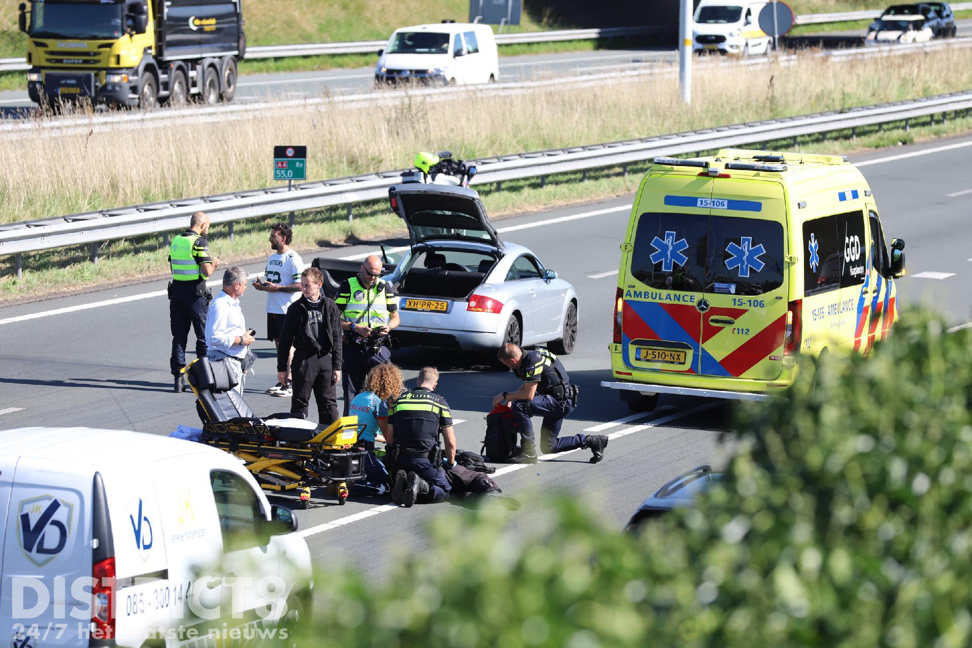 Meerdere eenheden van de politie samen met een ambulance kwamen met spoed ter plaatse. De motorrijder kwam na de aanrijding hard ten val.