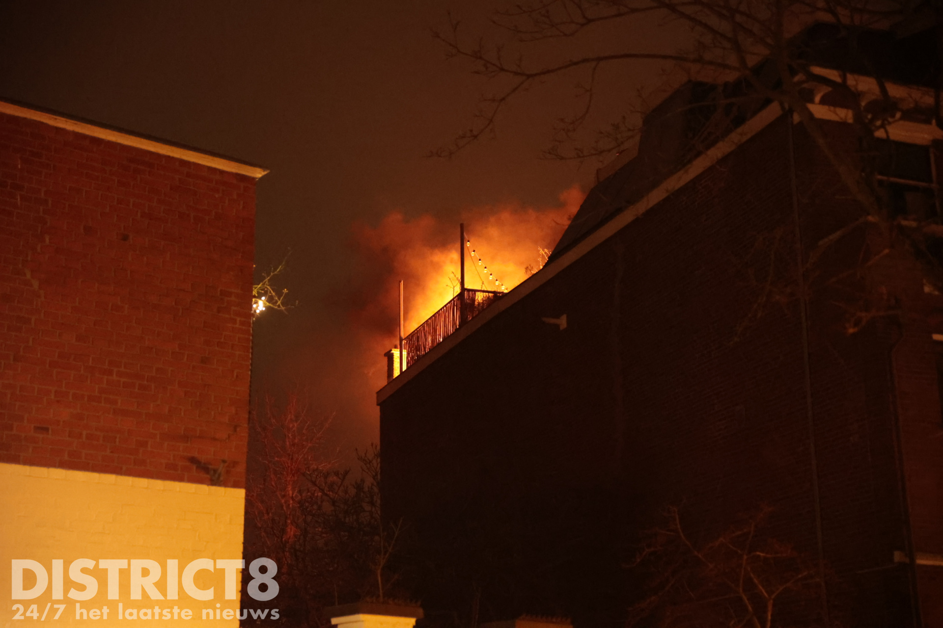 Den Haag – Bij een brand op een dakterras aan de Antonie Heinsiusstraat in Den Haag waren flinke vlammen zichtbaar. De bewoners waren niet thuis waardoor het vuur pas laat opgemerkt werd en het volledige dakterras reeds in brand stond toen de brandweer arriveerde.