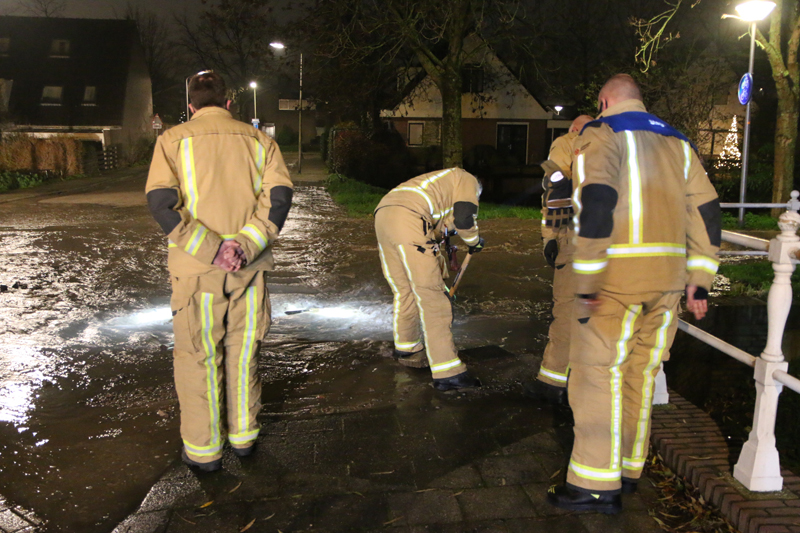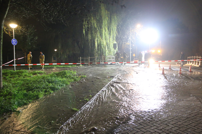 Ter plaatse bleek er een waterleiding te zijn gebarsten onder de grond, de brandweer kwam zonder spoed ter plaatse en heeft een ”plan van aanpak” gemaakt. Een groot gedeelte rondom het lek is afgezet door de brandweer, door het lek loopt het water de wijk in.
