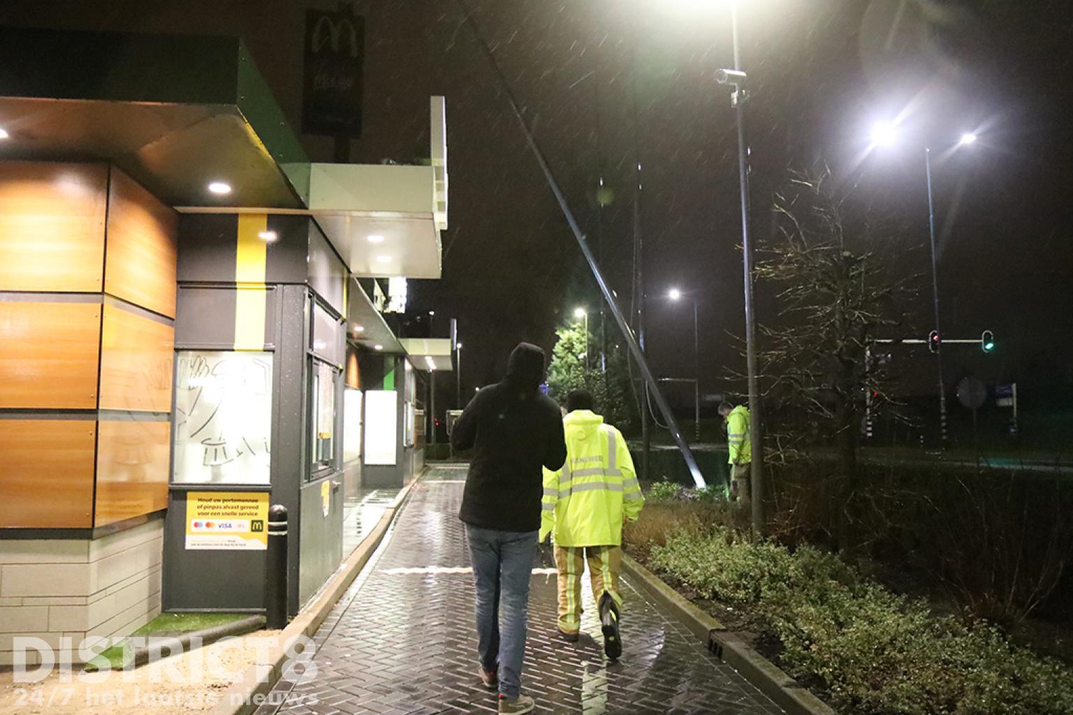 De vlaggenmast die langs de Macdrive staat hing vervaarlijk boven het gebouw. Als gevolg hiervan is de Macdrive afgesloten voor verkeer geweest, de Macdrive moest wel eerst ontruimd worden daar het helemaal vol stond met auto’s.