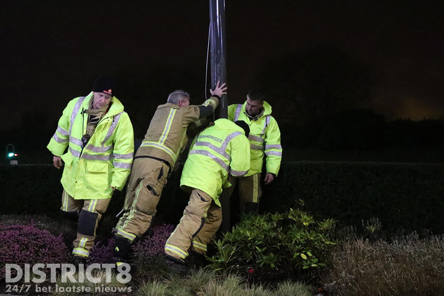 Zoetermeer – Vanavond werd de brandweer gealarmeerd vanwege een vlaggenmast die door de storm bijna was omgewaaid.