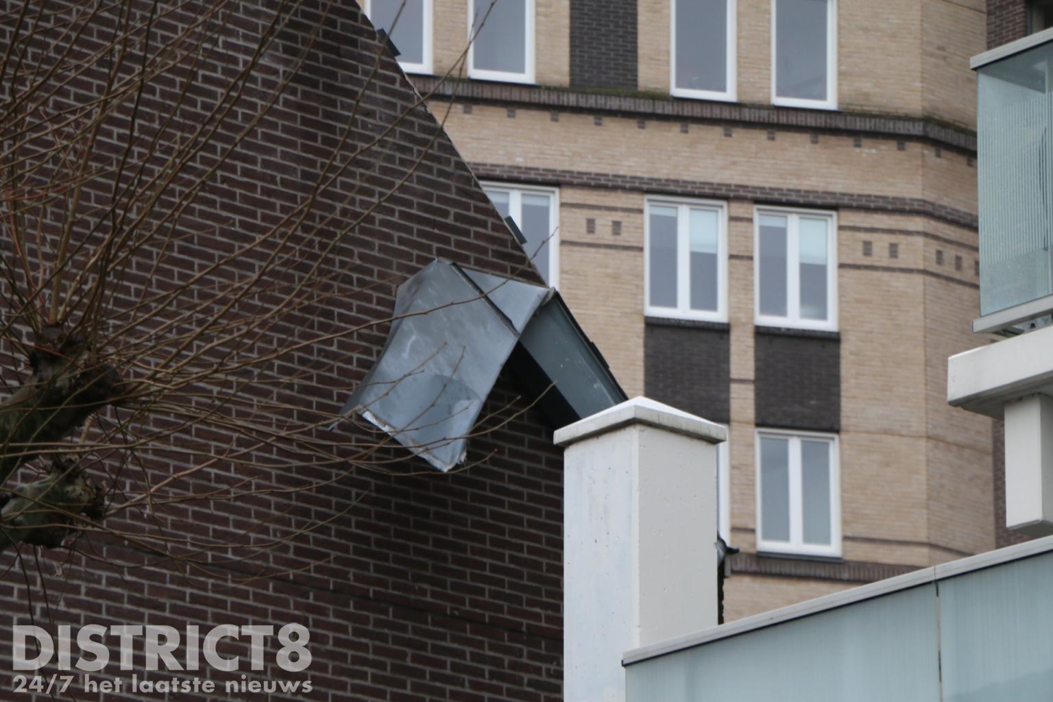 Den Haag – Op de Willem Silviusstraat in Den Haag zijn op twee woningen dakdelen losgelaten door de storm.