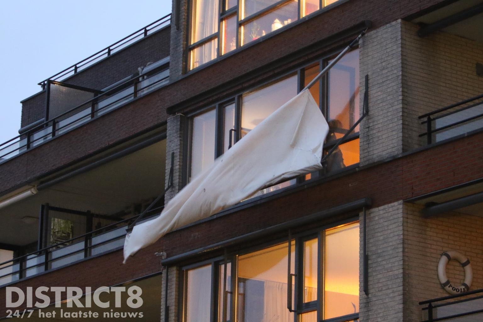 Delft – Op het Koningsveld in Delft is door de harde windstoten een zonnewering deels losgekomen. De brandweer kwam met spoed ter plaatse, zij hebben de zonnewering verwijderd.