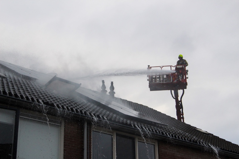 Uiteindelijk is hier hydrolisch gereedschap voor ingezet. Het lukte uiteindelijk om via de achterzijde binnen te komen om te beginnen met blussen. De brand is mogelijk ontstaan in de wasdroger welke op zolder stond. De overbuurman zag bij het ontstaan van de brand de vonken uit het dak slaan.