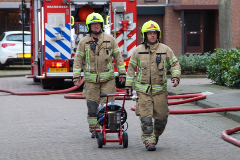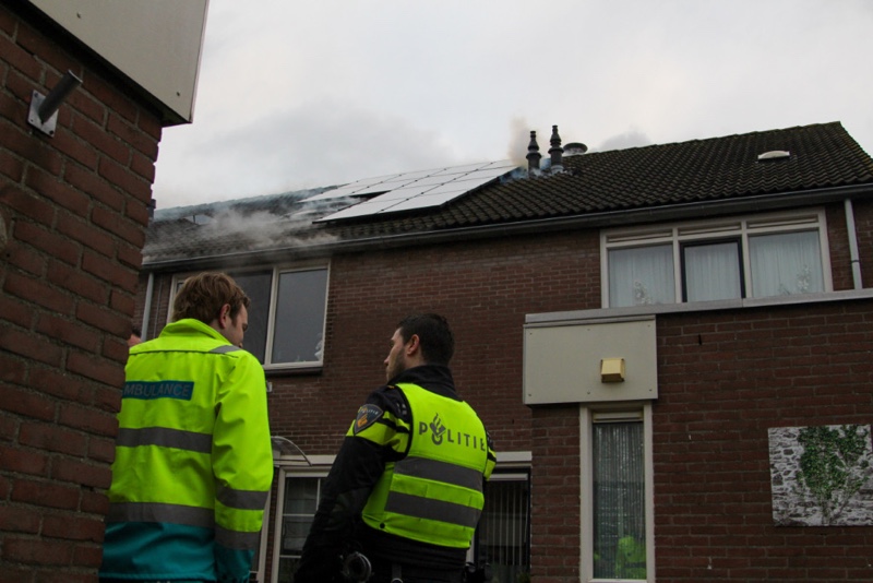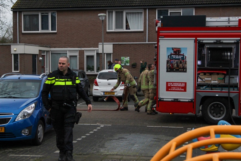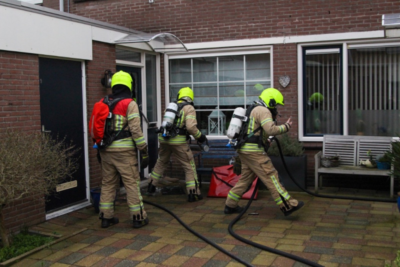 De brandweer schaalde op naar middelbrand. De brandweer had veel moeite om de woning te betreden. De kunststof voordeur weigerde mee te geven.