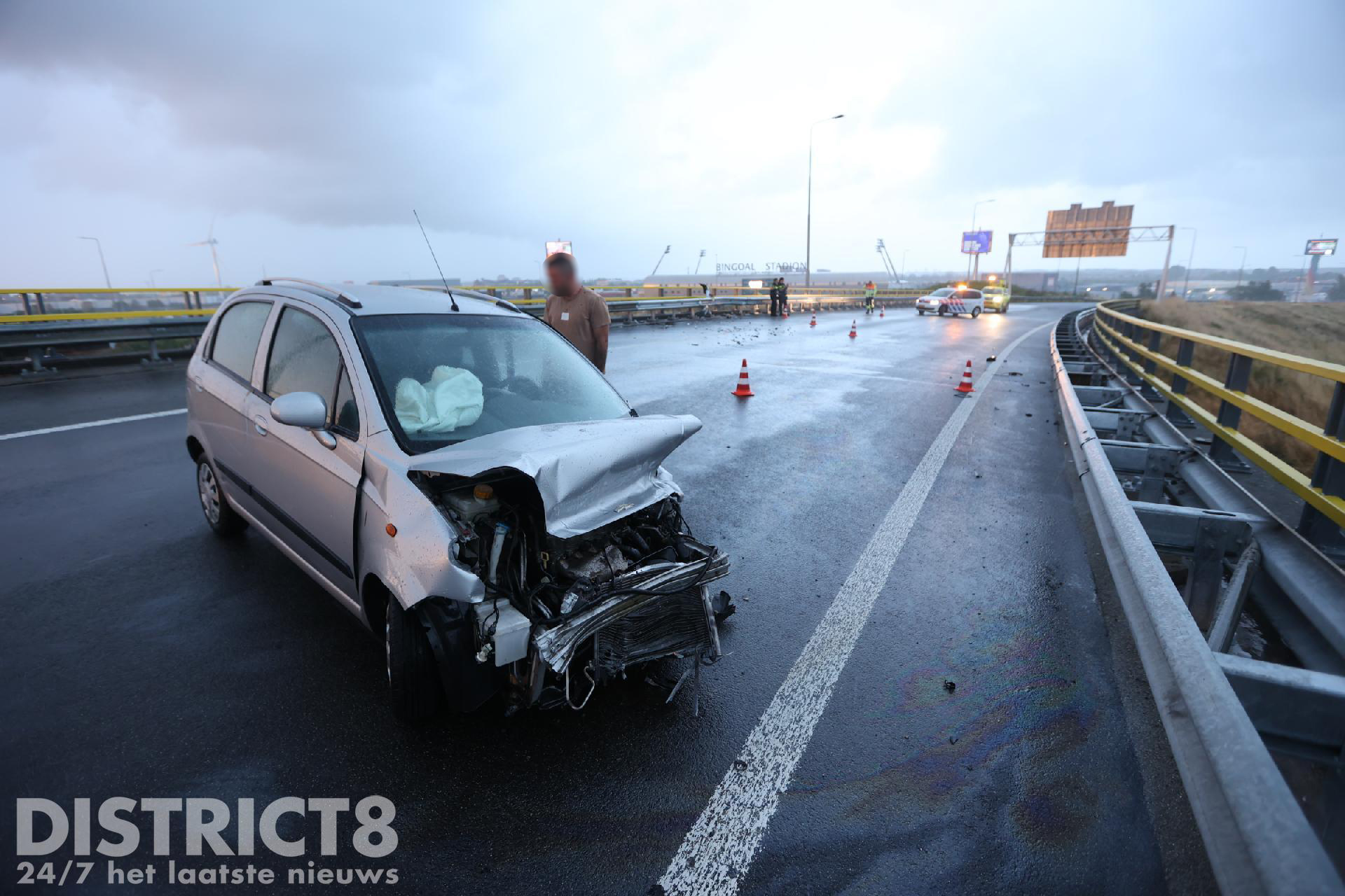 Een berger heeft het voertuig uiteindelijk afgesleept. De auto heeft bij de aanrijding zichtbaar veel brandstof verloren.
