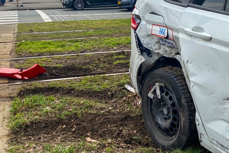 De hondenwagen was met spoed (zwaailicht en sirene) onderweg naar een melding. De bestuurder van het 40km wagentje raakte gewond en is behandeld door ambulancepersoneel.