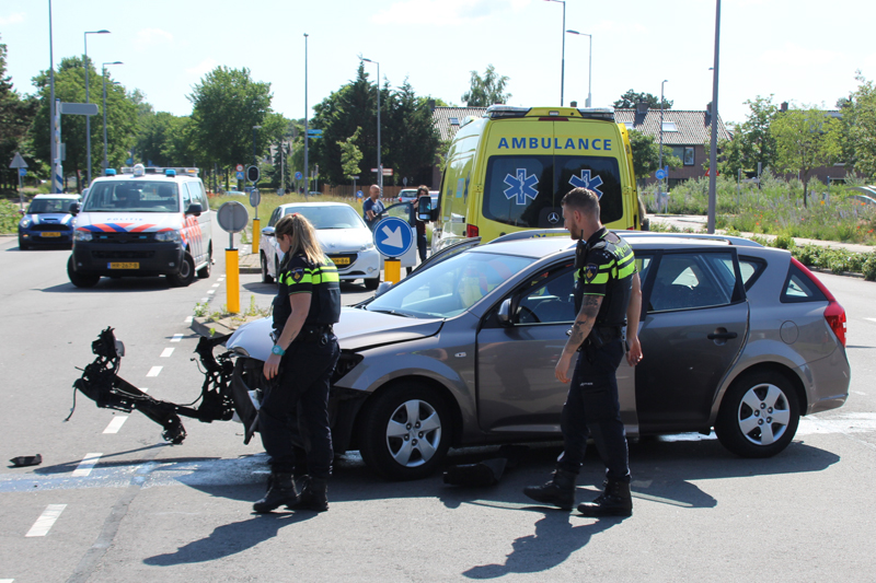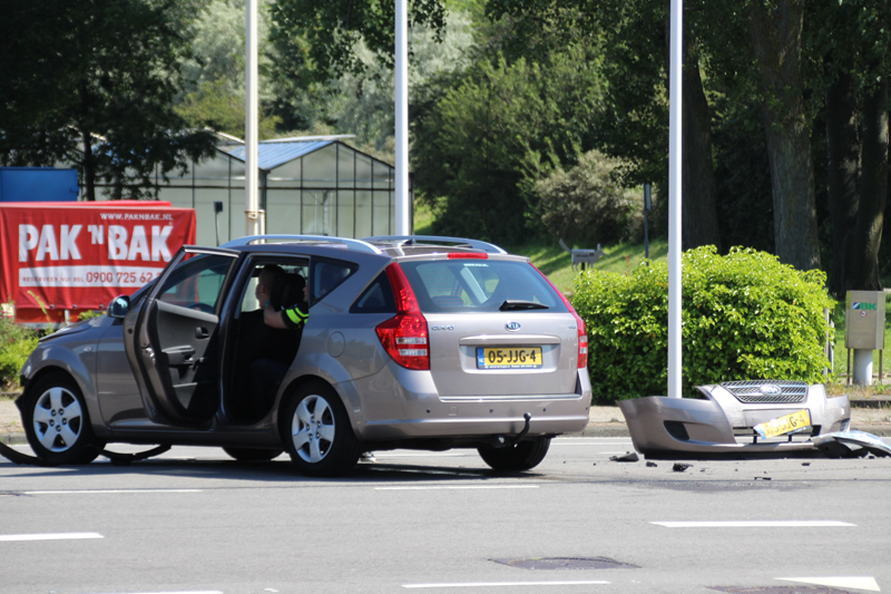 Na onderzoek in de ambulance is de bestuurder niet vervoerd. De inzittenden van de witte Peugeot bleven ongedeerd. Beide voertuigen zijn geborgen door Vreugdenhil. De Kia is naar alle waarschijnlijkheid total loss.