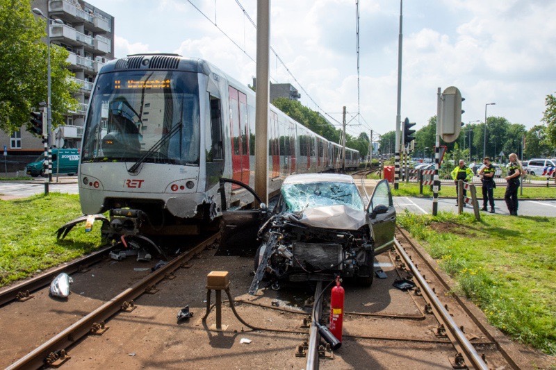 Rotterdam – Op de Prins Alexanderlaan zijn zaterdagmiddag een auto en de metro met elkaar in botsing gekomen.