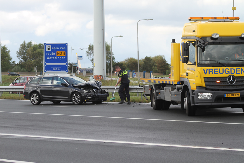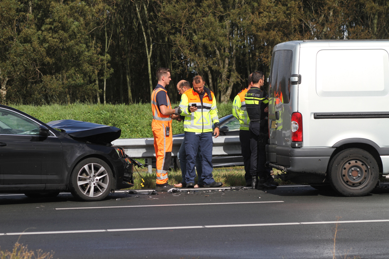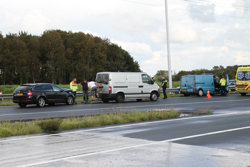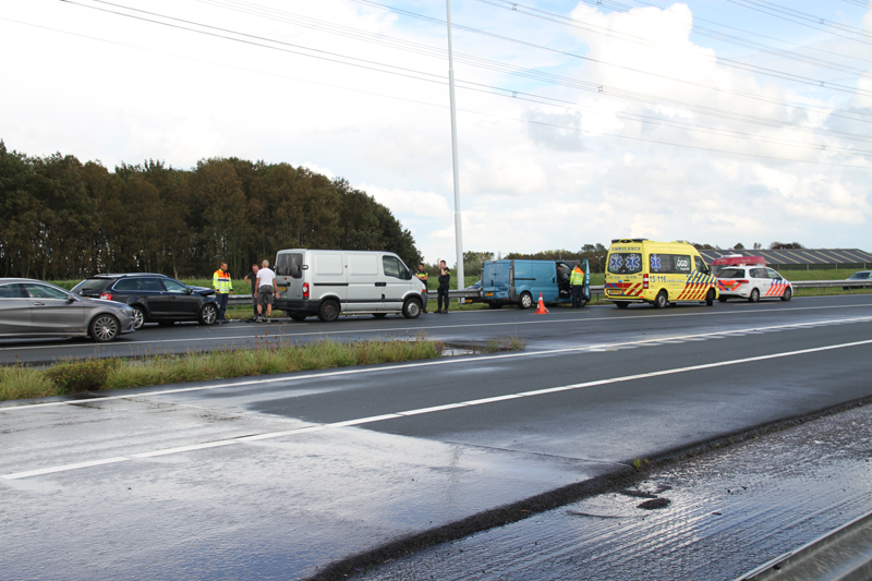 Schipluiden – Bij een aanrijding op de A4 is vrijdagmiddag forse schade ontstaan. Een personenauto kwam door onbekende oorzaak in botsing met een bestelbus, die daarop in botsing kwam met de bestelbus ervoor.