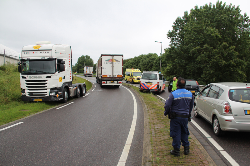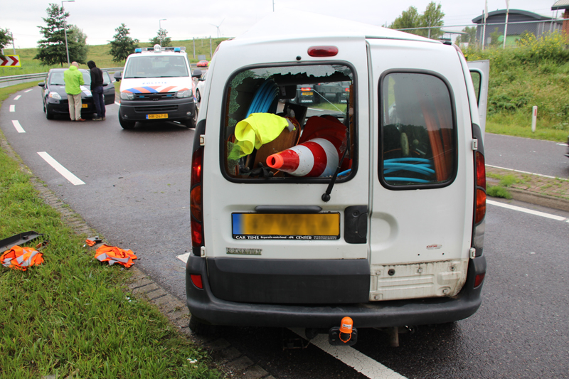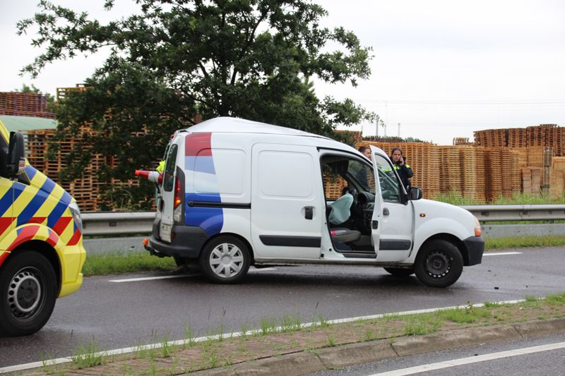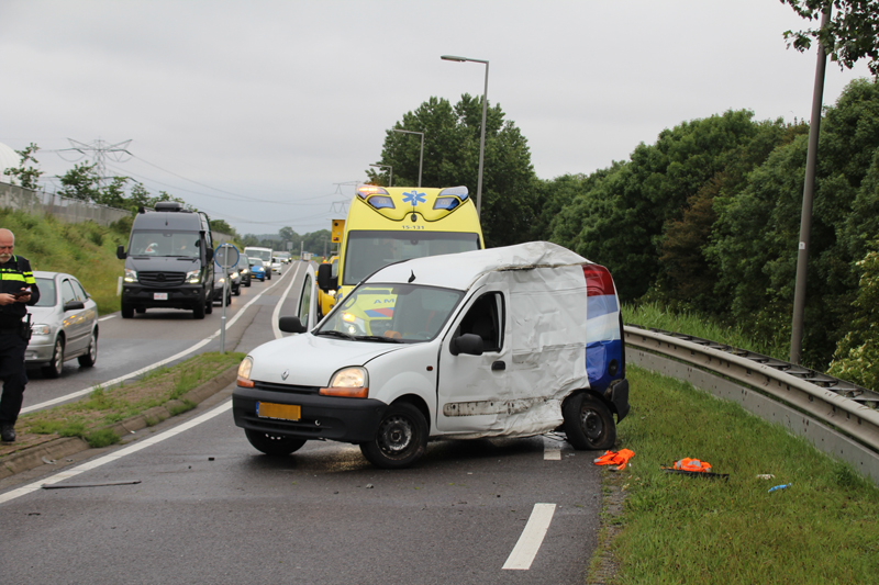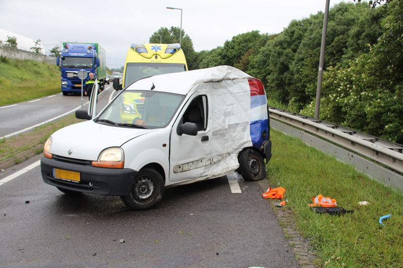 De auto knalde daardoor terug op de andere weghelft. De man raakte wonder boven wonder slechts lichtgewond. Na behandeling is hij niet vervoerd.