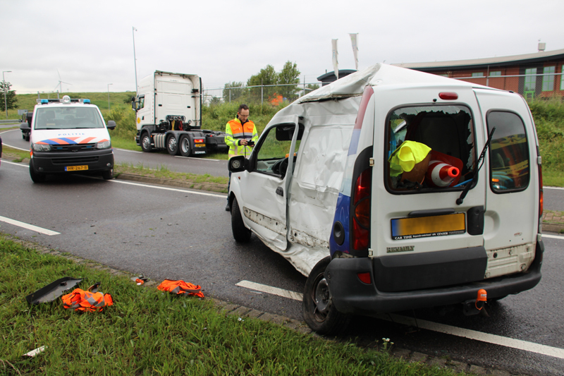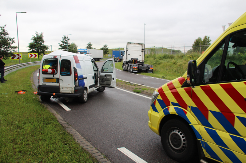 Hoek van Holland – Op de Hoeksebaan is een bestuurder van een busje de macht over het stuur verloren. Hij kwam op de andere weghelft terecht en knalde op een tegemoetkomende vrachtwagen.