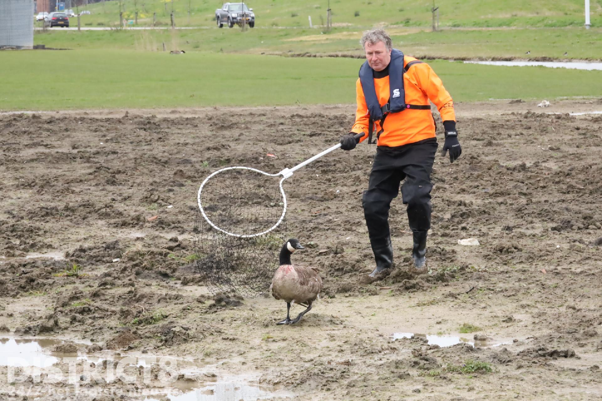 Bij de aanrijding raakte de gans zwaargewond aan zijn hoofd en nek. De opgetrommelde dierenambulance probeerde de gans met een net te vangen, helaas mislukte deze poging en vluchtte de gans het water in, hiervoor werd de brandweer opgeroepen.