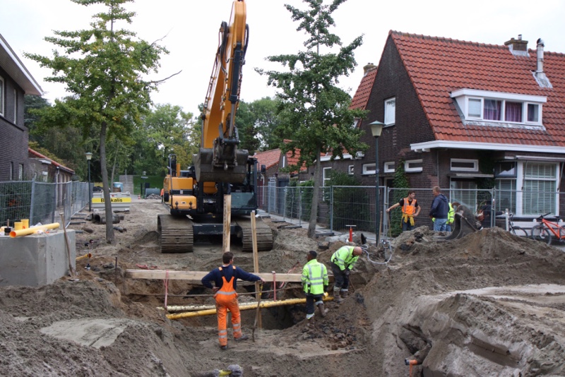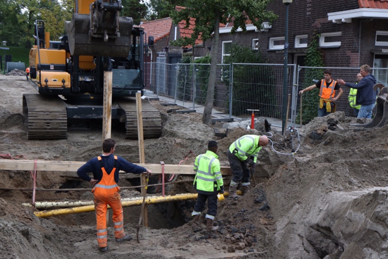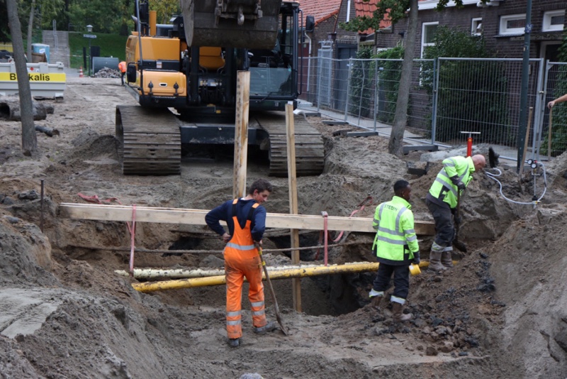 Werknemers van Stedin zijn druk bezig om de lekkage op te sporen en te dichten.