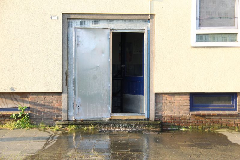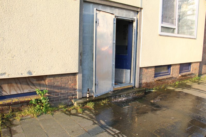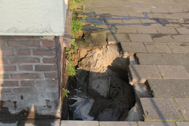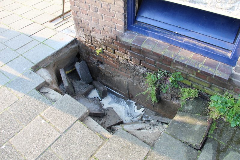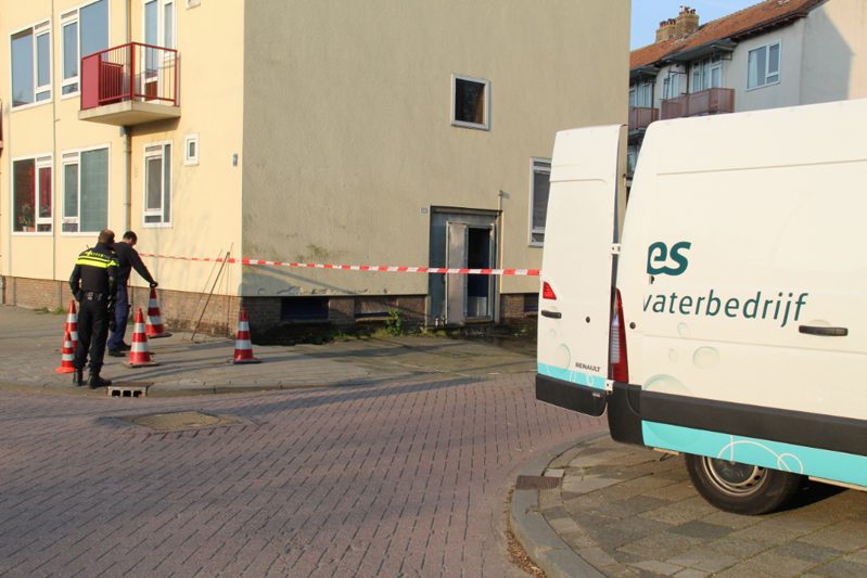 Schiedam – Aan de Cornelis Drebbelstraat in Schiedam is dinsdagochtend een waterlekkage ontstaan in een slooppand. Het water stroomde naar buiten en veroorzaakte ook 2 flinke gaten in de stoep. Waterbedrijf Evides is ter plaatse gekomen om de lekkage te stoppen.