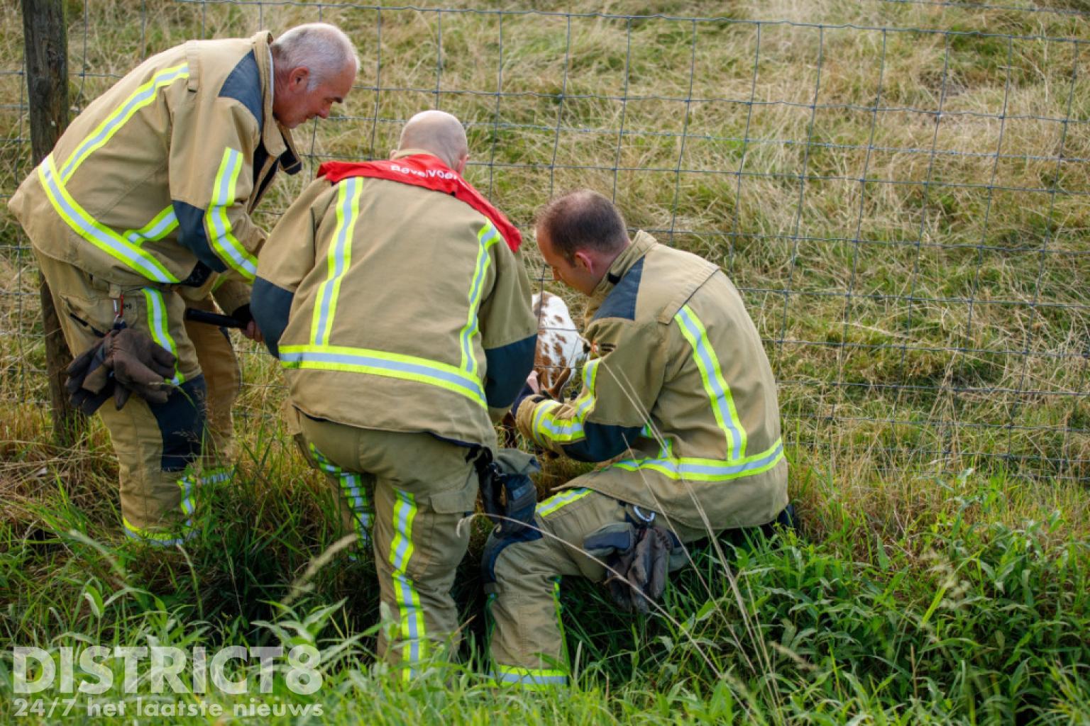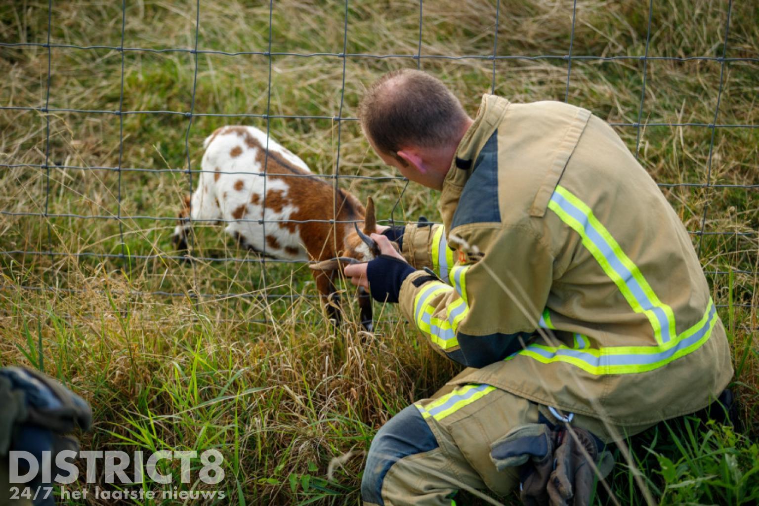 De brandweer wist de geit snel te bevrijden door het hekwerk los te knippen. Het dier raakte verder niet gewond.