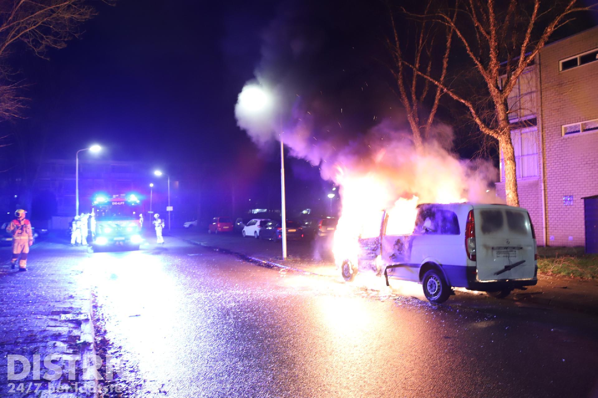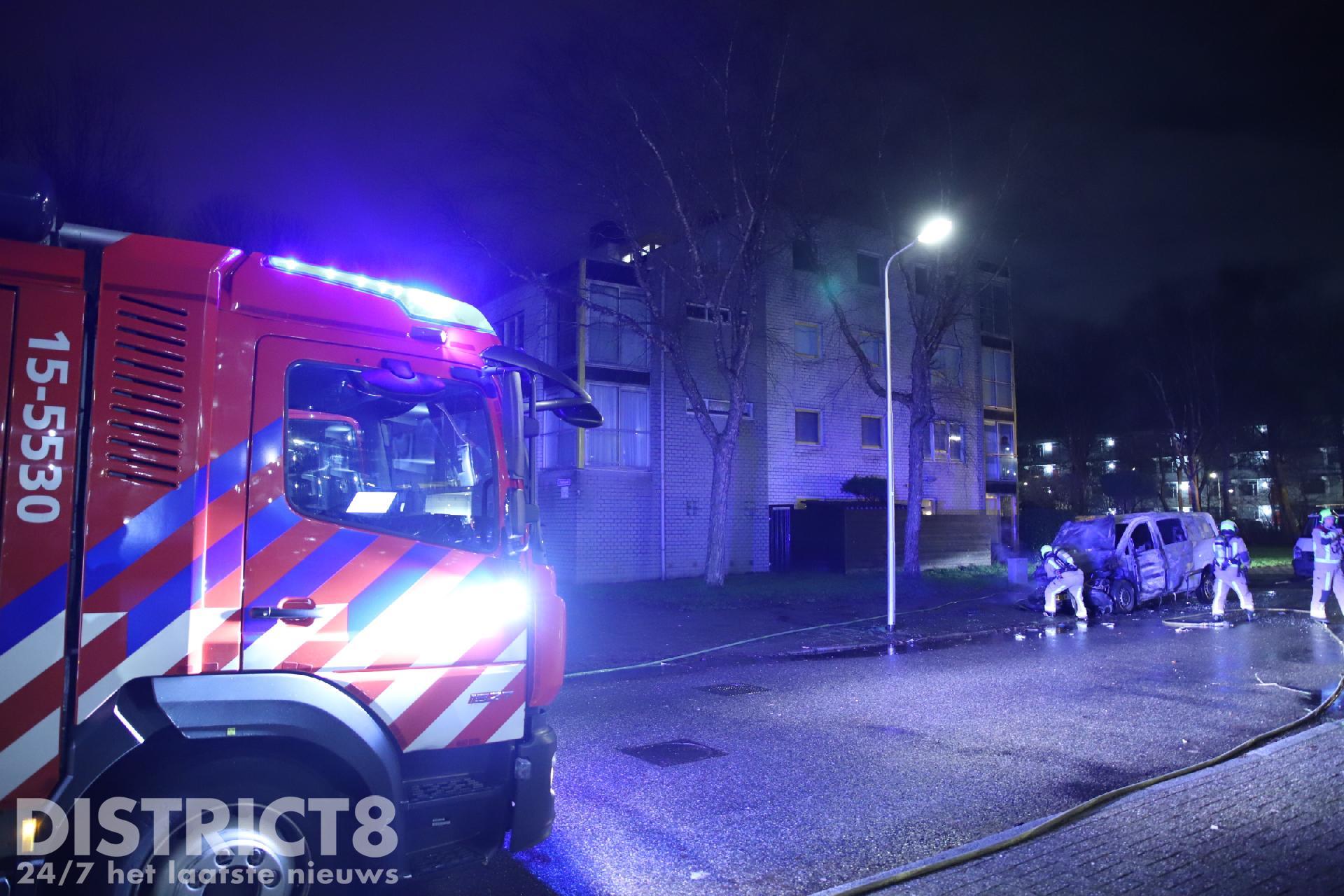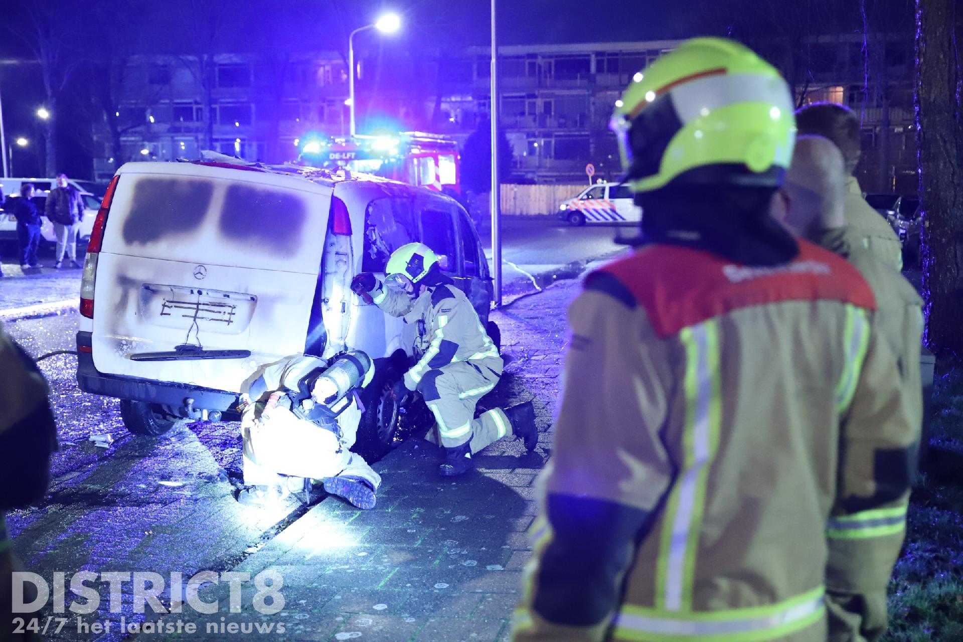 Delft – In de vroege ochtend van zaterdag 7 januari is er op de Beethovenlaan in Delft een geparkeerd busje in brand gestoken, omstreeks 06:05 kwam de melding van een buitenbrand binnen op de meldkamer, hierop werd de brandweer van Delft zonder spoed gealarmeerd. Echter volgde al snel meerdere telefoontjes dat het geen buitenbrand betrof maar een voertuigbrand.