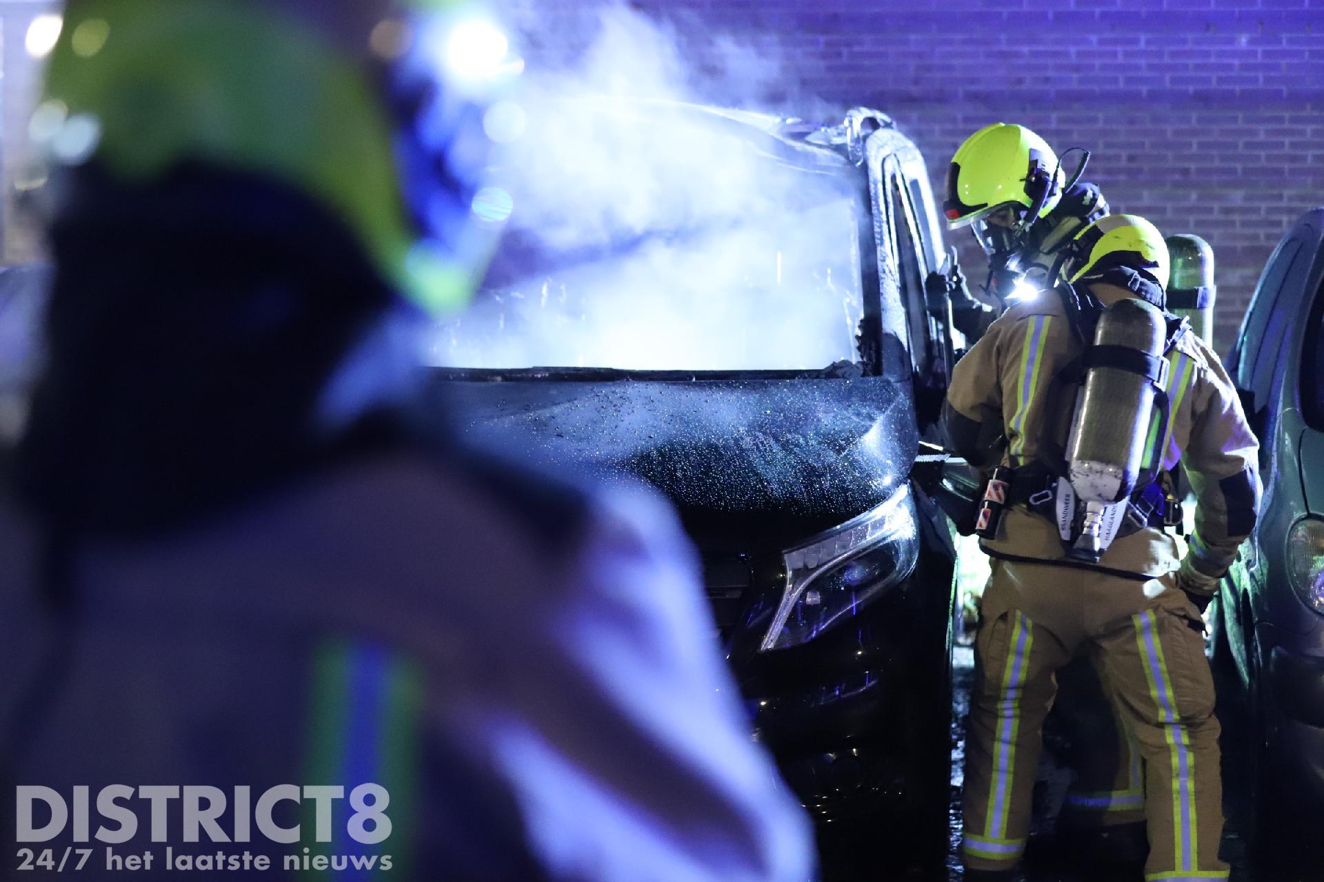 Met een spreider heeft de brandweer de motorkap van de bus geforceerd om te controleren of alle brandhaarden geblust waren. Ondanks de snelle inzet van de brandweer kon niet worden voorkomen dat het busje enorme schade opliep, ook twee geparkeerde autos aan weerszijde van het busje liepen door de hitte van de vlammen schade op.