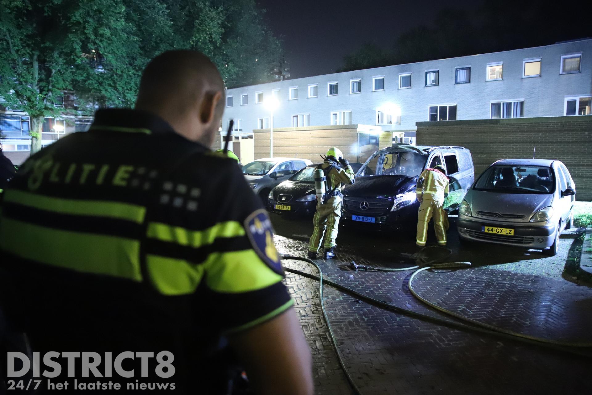 Delft – In de nacht van dinsdag 10 op woensdag 11 oktober is er iets voor 04:00 uur een geparkeerd taxi busje in brand gestoken aan het Poptahof Zuid. Iets voor 4 uur hoorde omwonenden een harde knal, toen zij naar buiten keken zagen zij dat er vlammen uit een geparkeerd busje sloegen, ze belde direct 112.