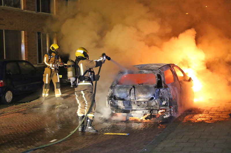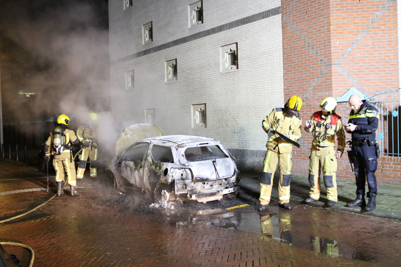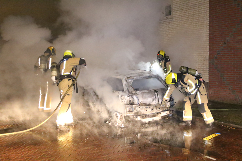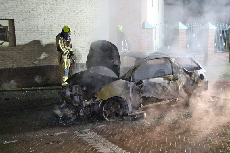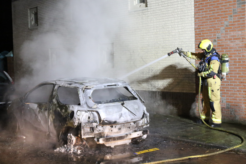 De auto raakte door de brand total loss. De politie sluit brandstichting niet uit.