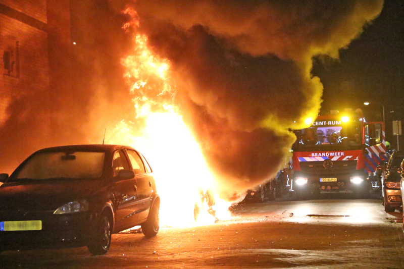 De brandweer werd om kwart voor drie gealarmeerd voor een voertuigbrand. Toen de brandweer arriveerde stond de auto volledig in brand.