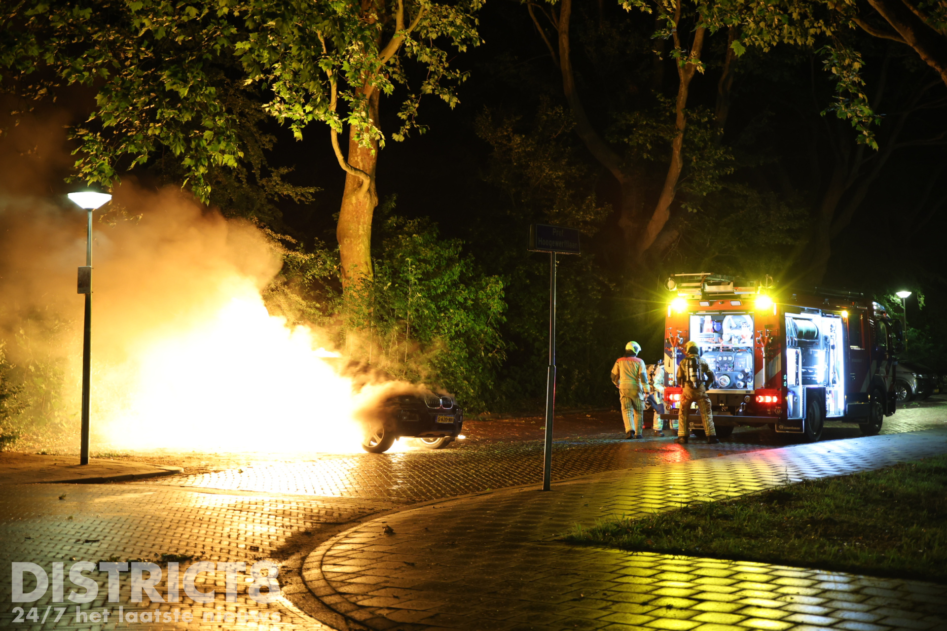 Delft – Op de Professor Hoogewerfflaan in Delft is in de nacht van zaterdag 7 op zondag 8 juni een geparkeerde auto het doelwit geworden van brandstichting. Omstreeks 01:00 uur hoorden omwonenden een harde knal. Toen zij naar buiten keken, zagen zij dat een geparkeerde BMW in brand stond. Direct werd door meerdere getuigen 112 gebeld.