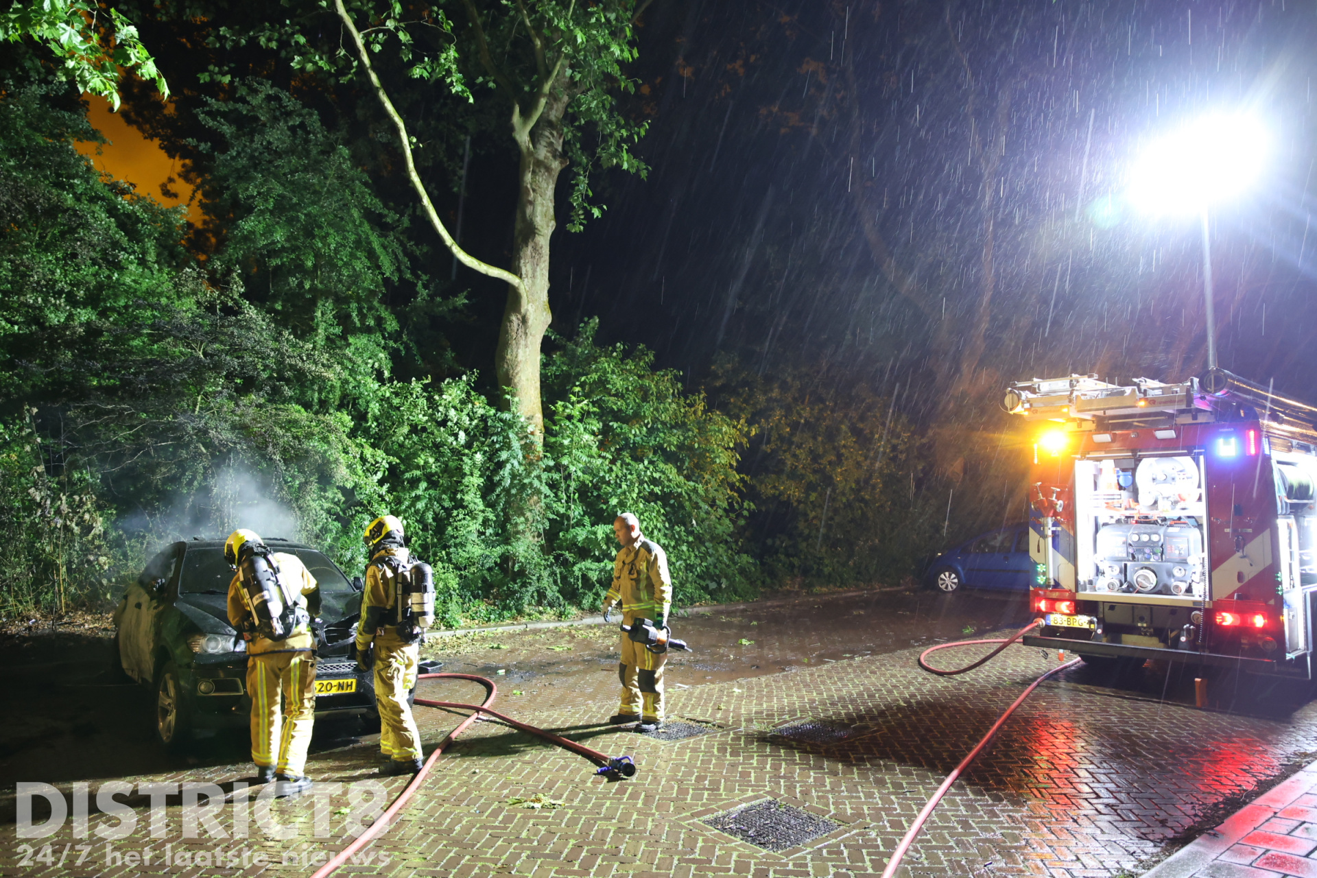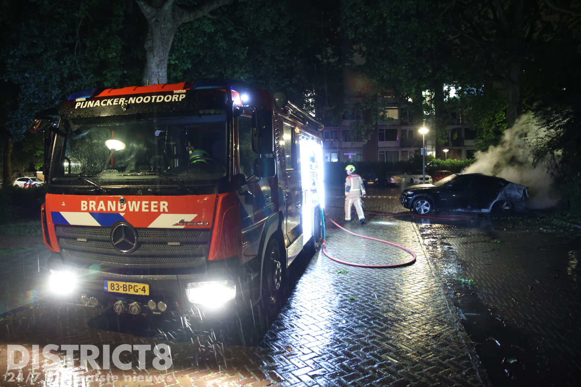 De brandweer van kazerne Pijnacker-Nootdorp kwam met spoed ter plaatse en startte direct een blusactie om de brandende auto te blussen. Ook de bosschage, die inmiddels vlam had gevat, moest worden geblust. Uiteindelijk kreeg de brandweer de vlammen, die voornamelijk aan de achterzijde van het voertuig woedden, onder controle. De brandweer heeft de motorkap van de wagen opengebroken om er zeker van te zijn dat de brand volledig geblust was.