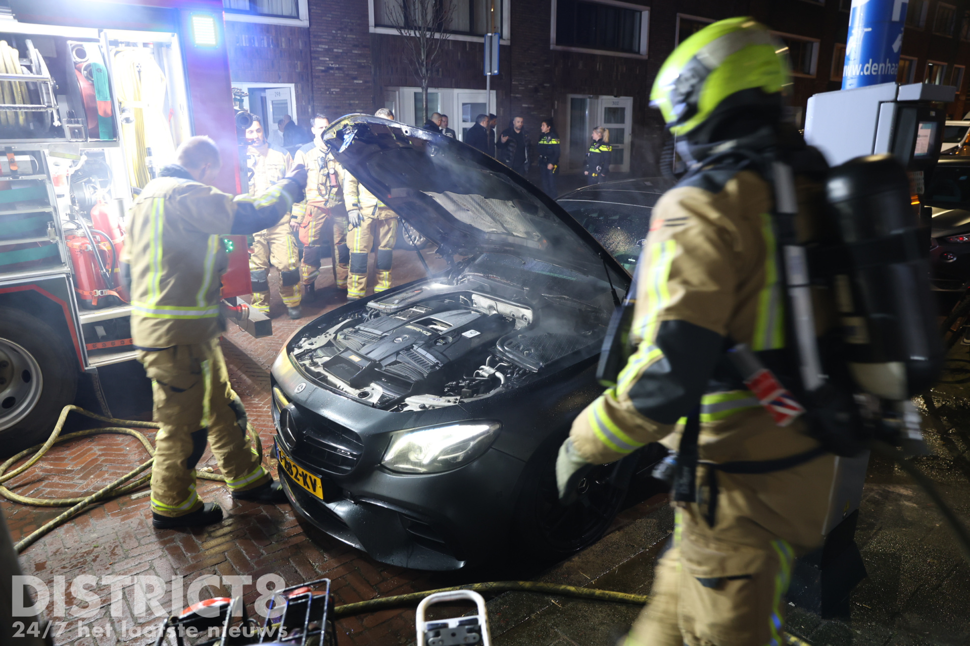 Den Haag – Op de Wolmaransstraat in Den Haag is maandagavond 19 januari een geparkeerde Mercedes AMG E 63S in brand gestoken. Onbekende(n) hebben volgens getuigen een brandbare vloeistof over de voorruit van het voertuig gespoten en vervolgens in brand gestoken.