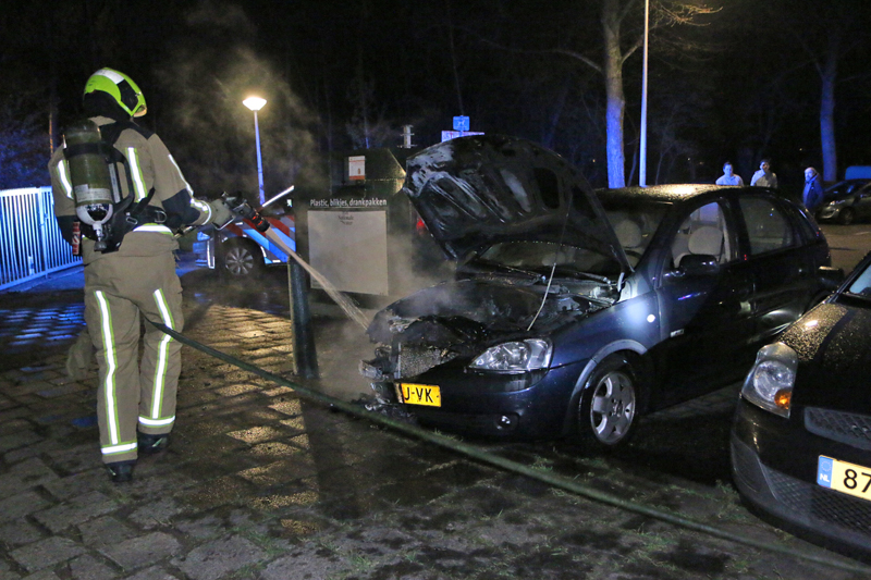 Ondanks dat de brandweer het vuur snel uit kreeg, raakte de auto zwaar beschadigd.