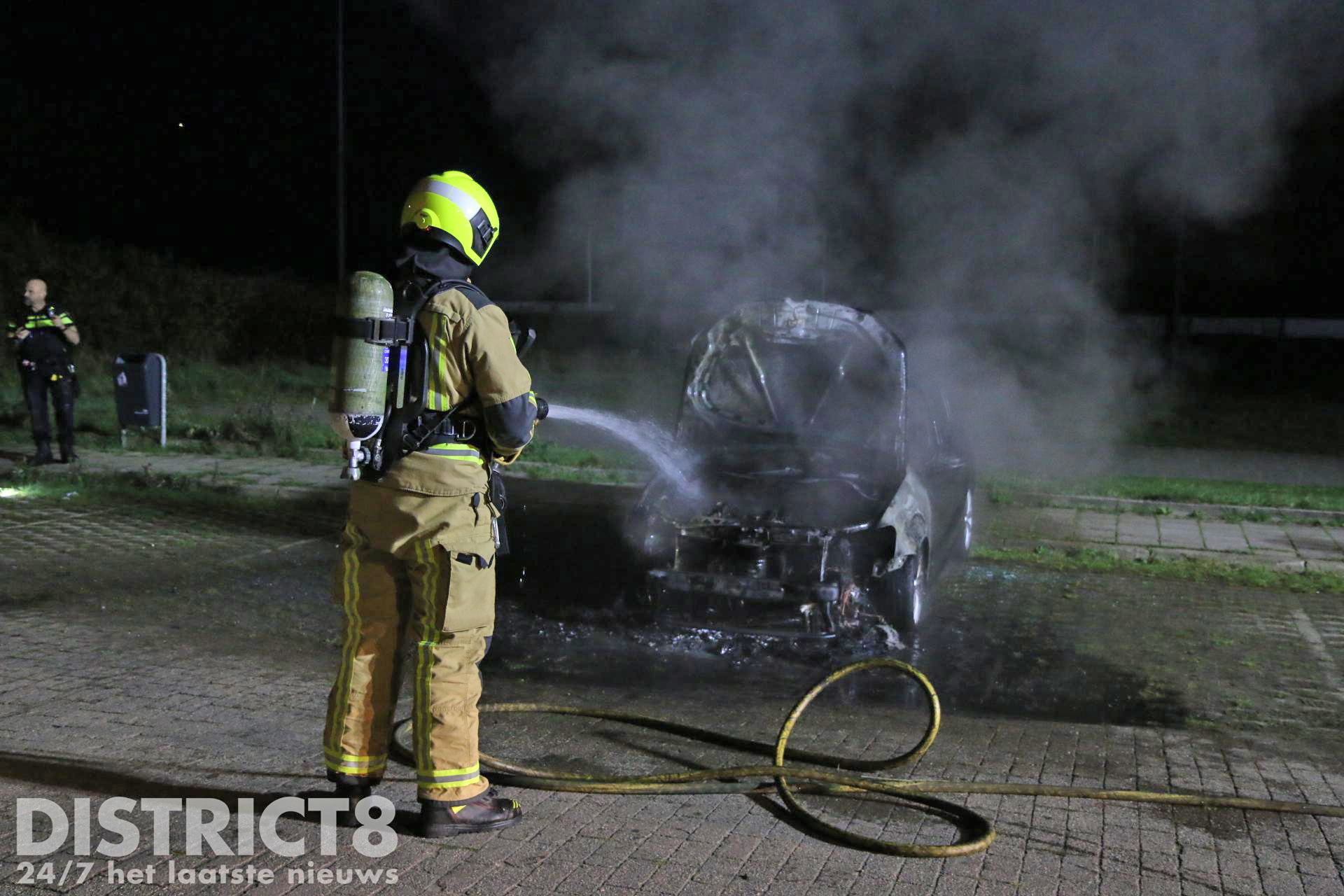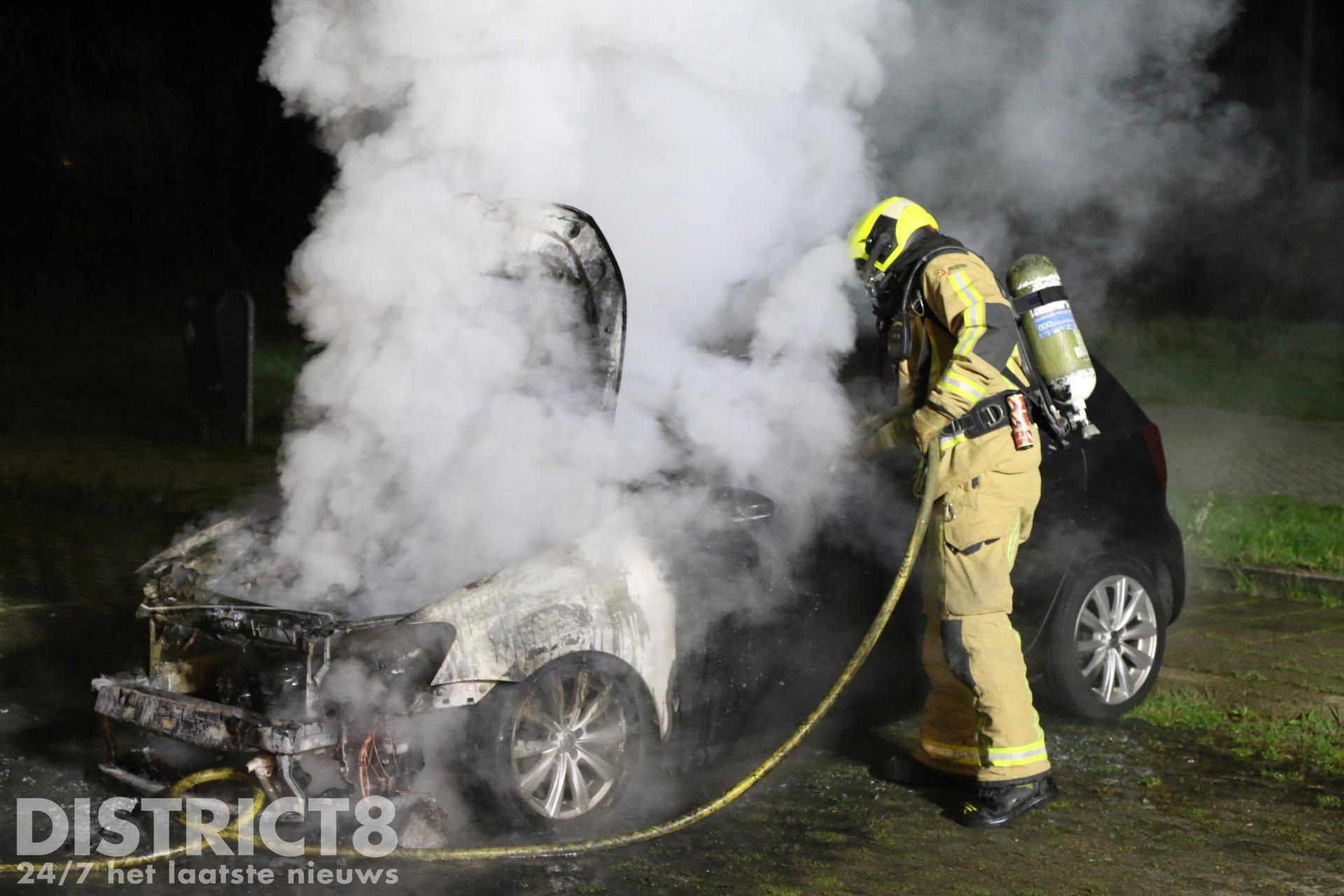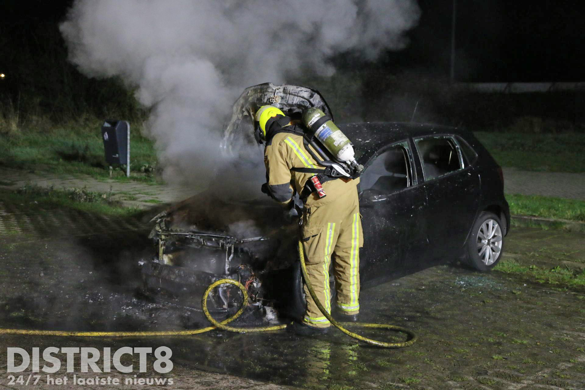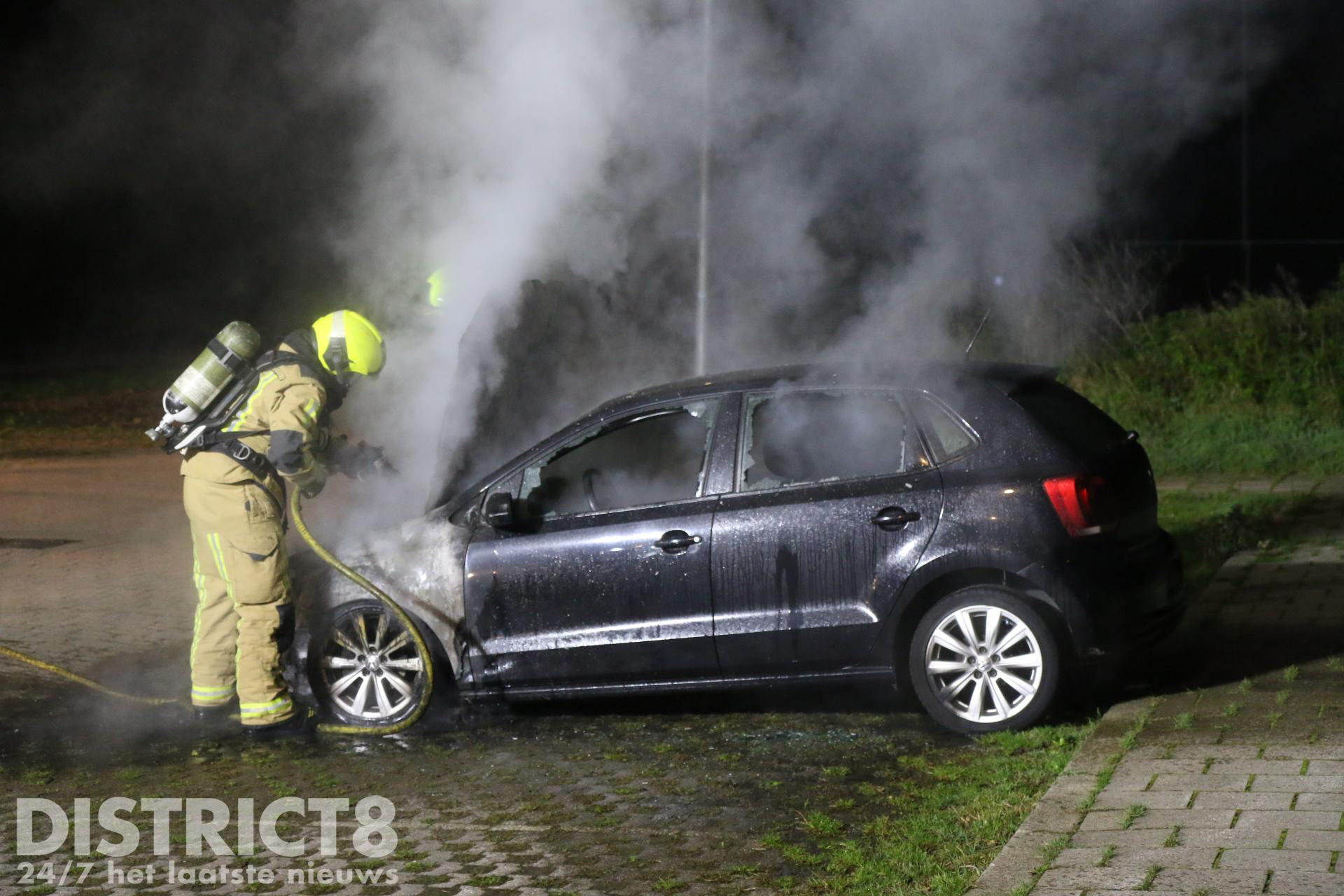 Een berger zal ter plaatse komen om de auto af te slepen. Brandstichting wordt niet uitgesloten.