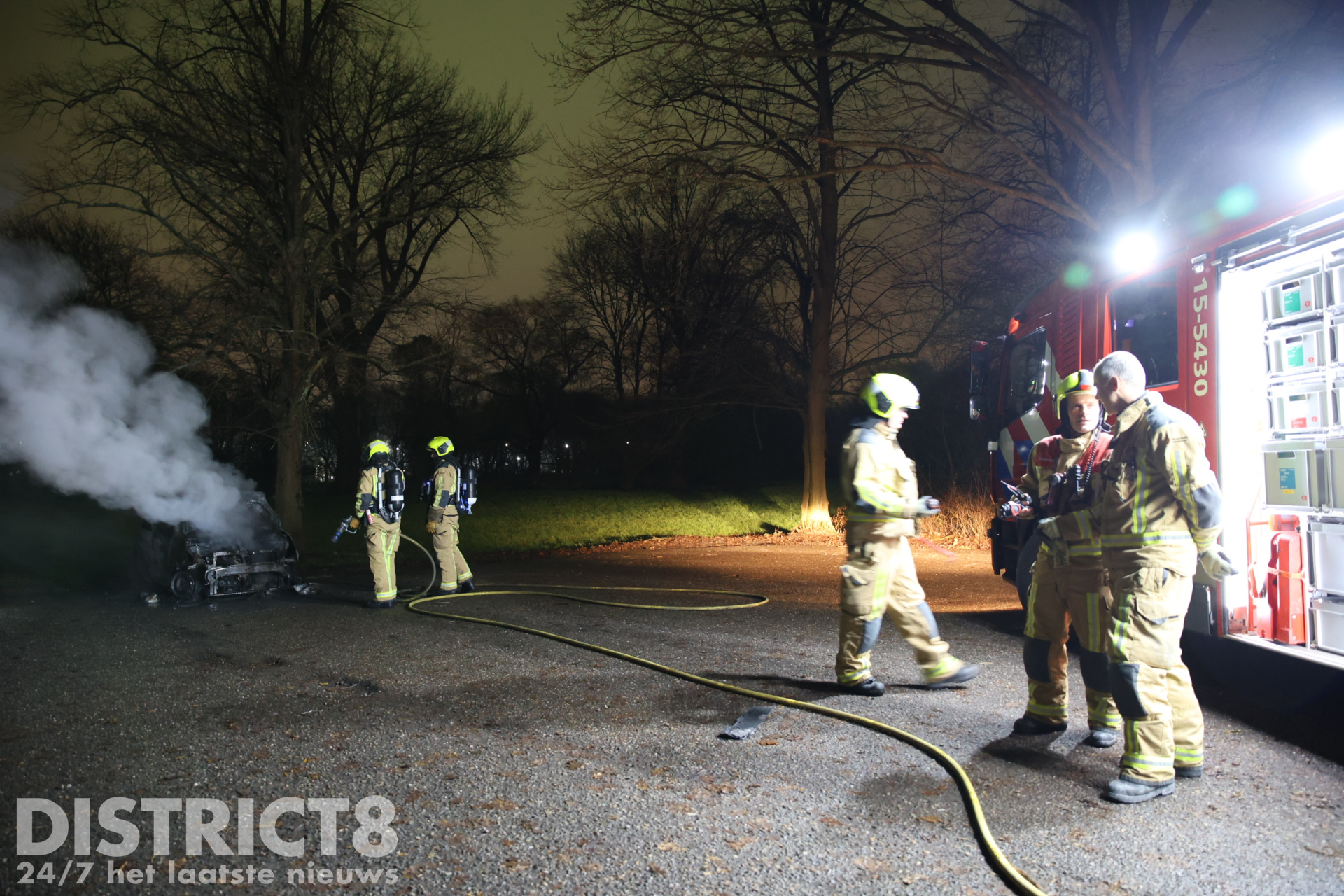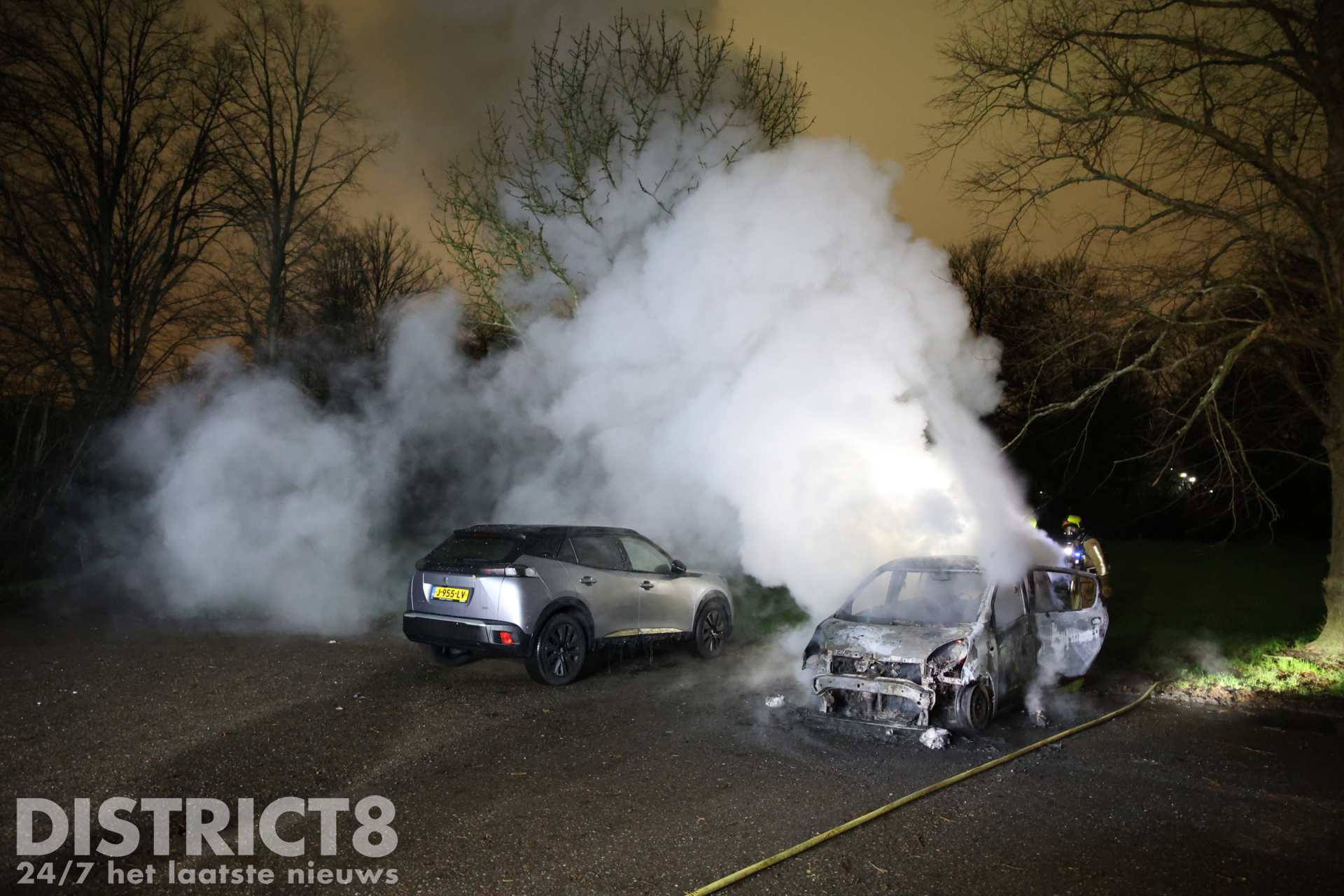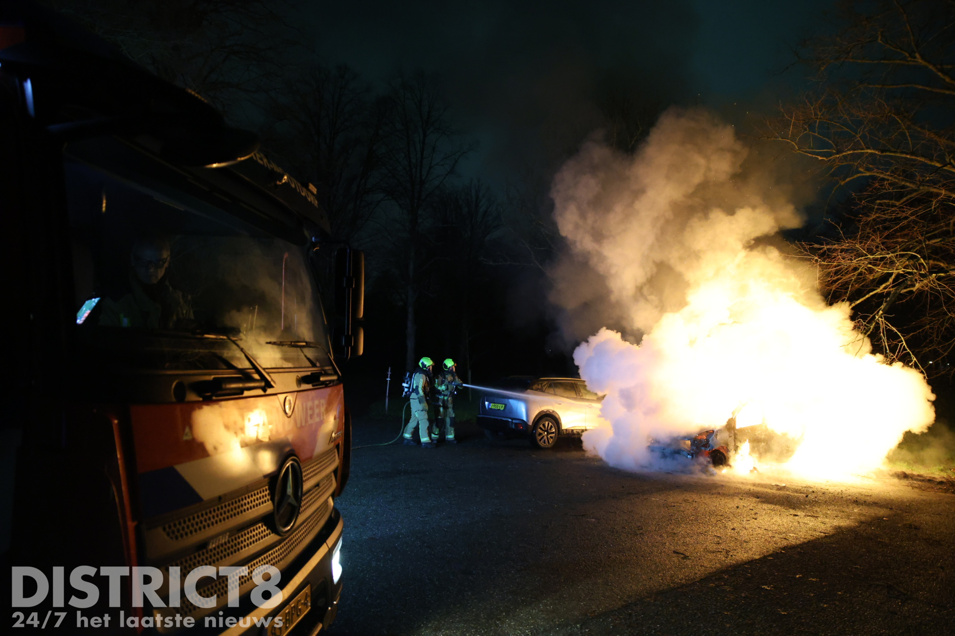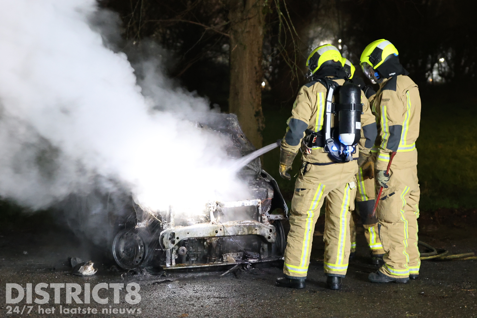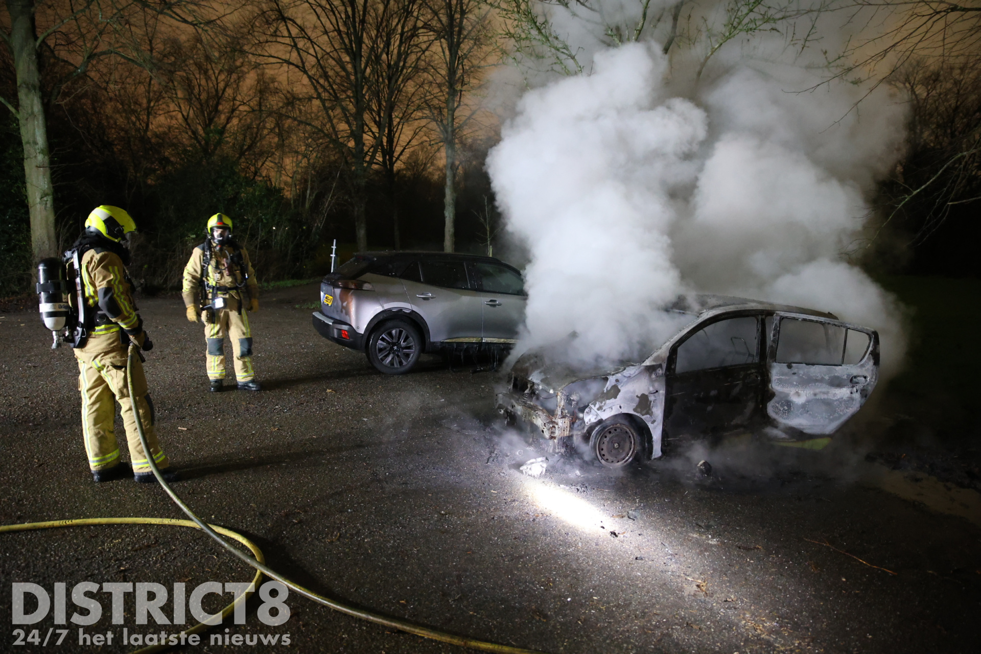 Bij aankomst stond de geparkeerde auto al volledig in brand, de brandweer is direct begonnen met blussen maar kon ondanks de snelle inzet niet voorkomen dat de auto volledig uitbrandde.
