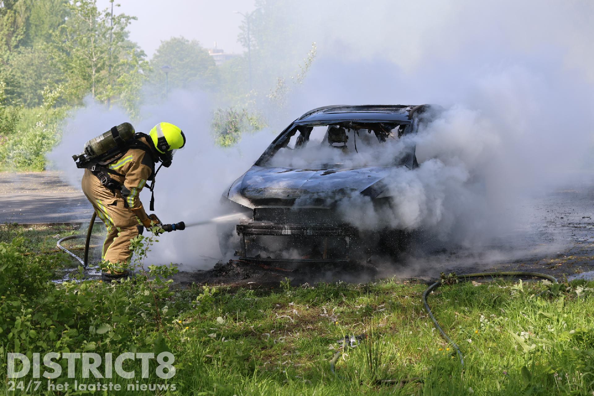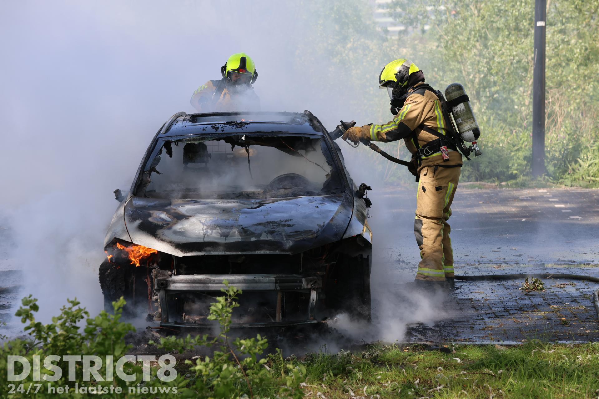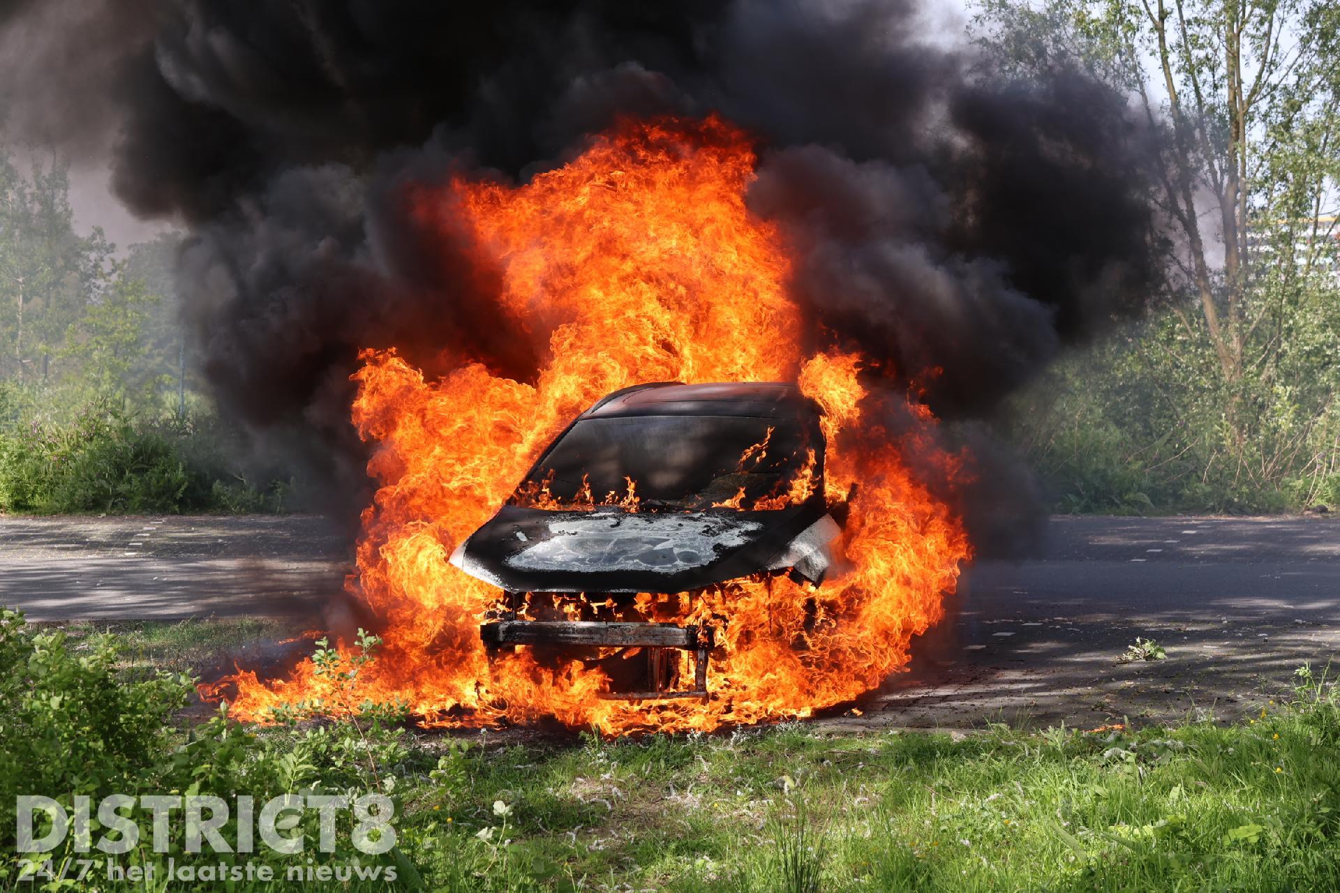 De auto is volledig uitgebrand. Bij de brand kwam veel rook vrij.