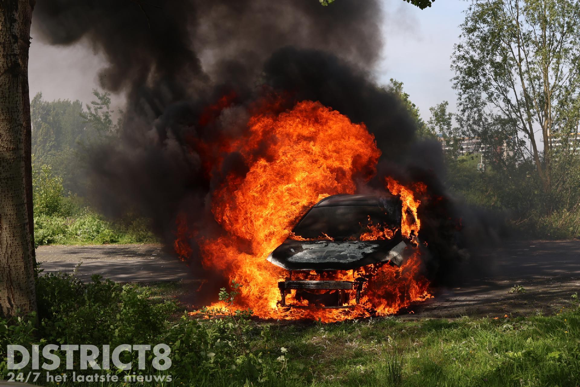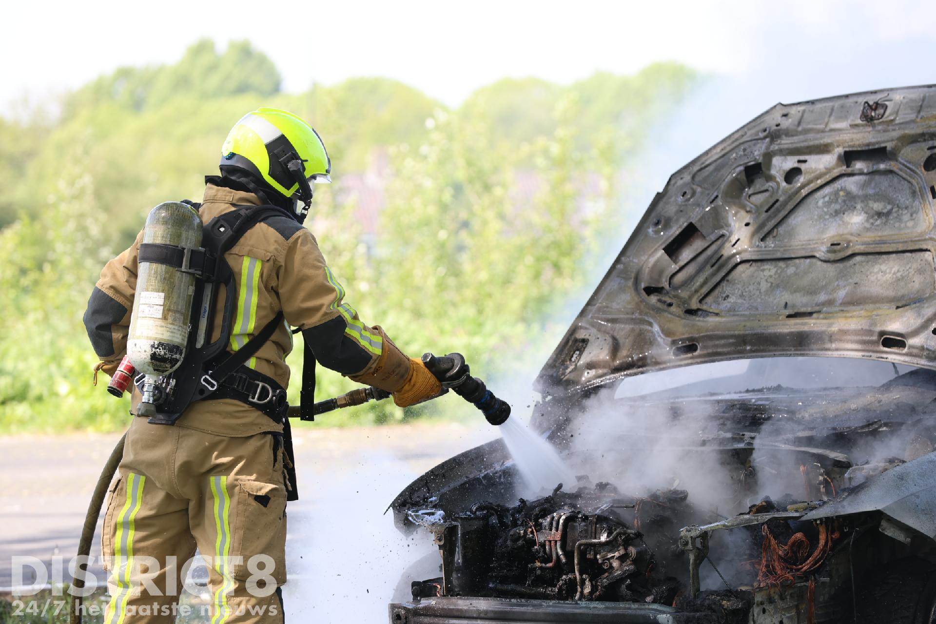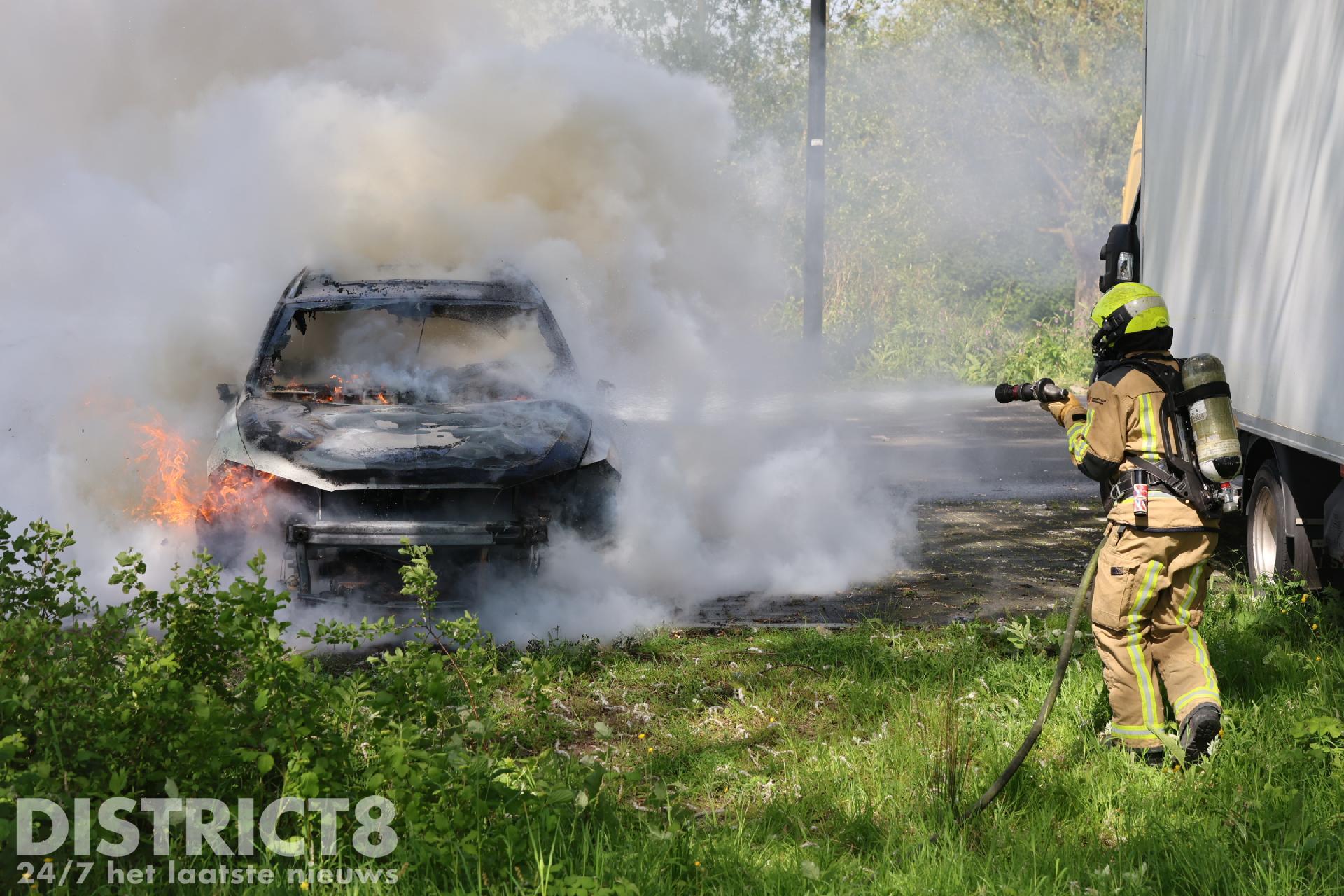 De auto is volledig uitgebrand. Bij de brand kwam veel rook vrij.