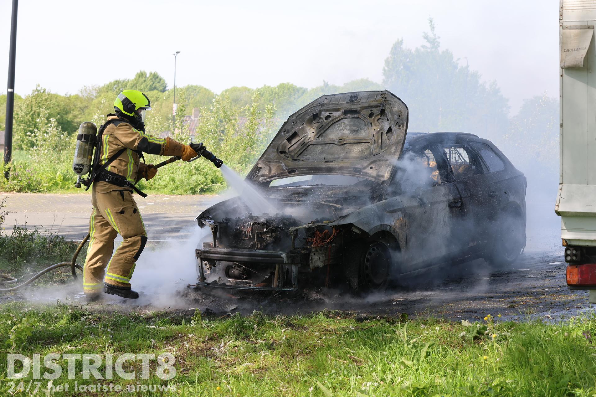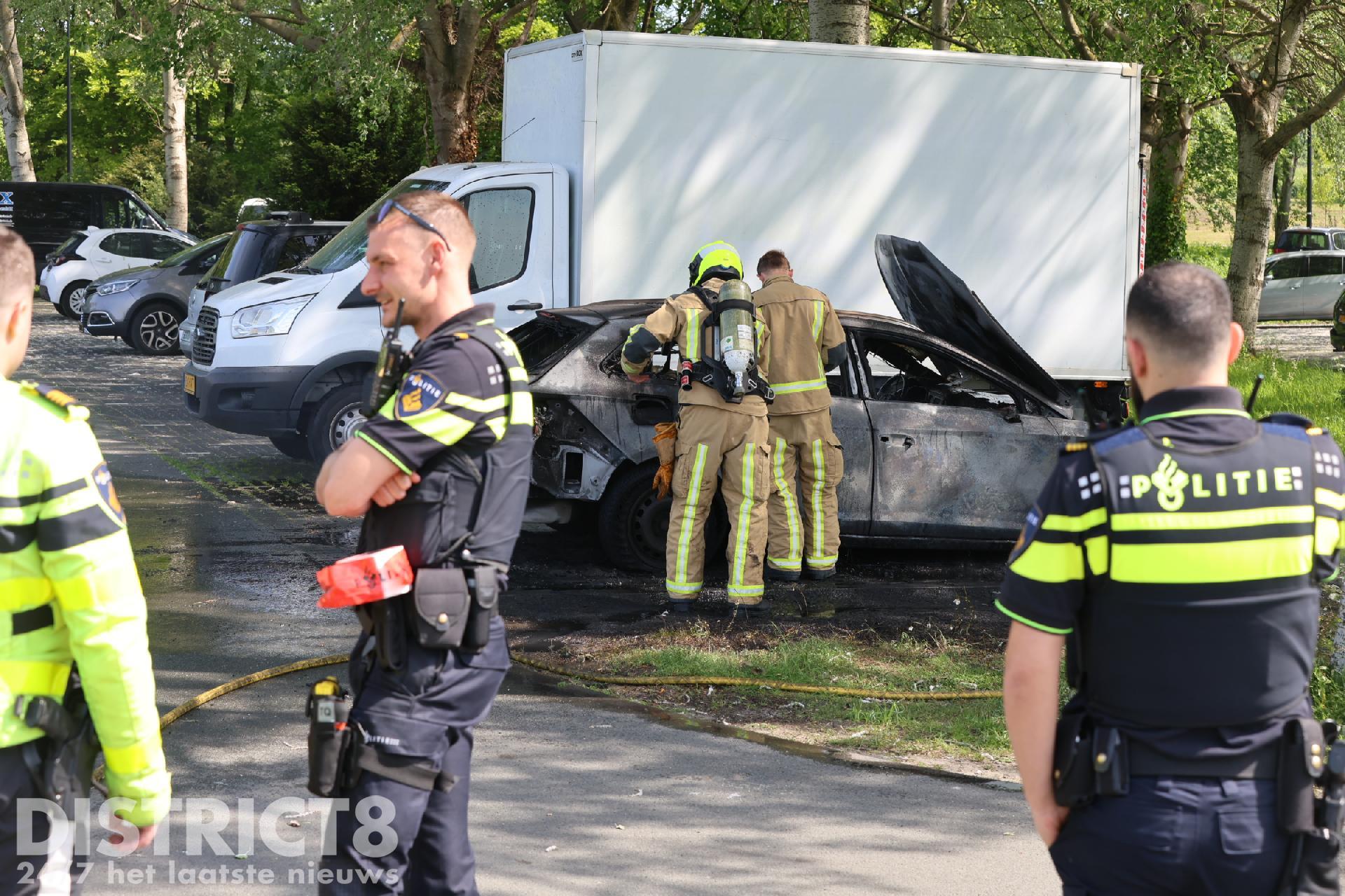 Rijswijk – Op het parkeerterrein van het Wilhelminapark in Rijswijk is zondagochtend 12 mei een geparkeerde auto in vlammen opgegaan. Hoe de brand is ontstaan is nog onbekend.