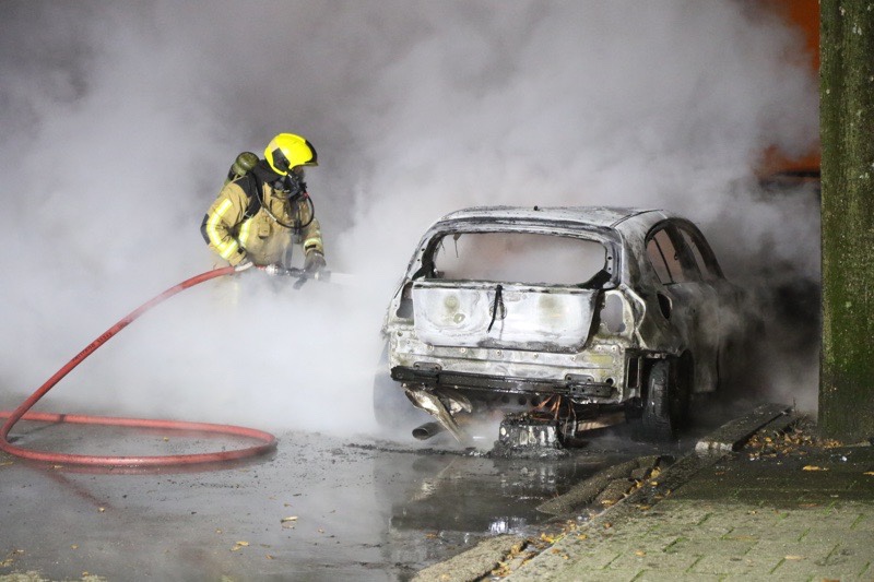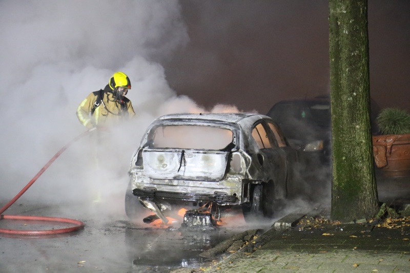 De brandweer kwam snel ter plaatse, maar bij aankomst stond één voertuig al volledig in lichterlaaie. Ook de auto ernaast vloog in brand. Al snel na aankomst van de brandweer werd gestart met blussen van de auto’s. Na enkele minuten was de brand onder controle.