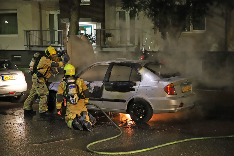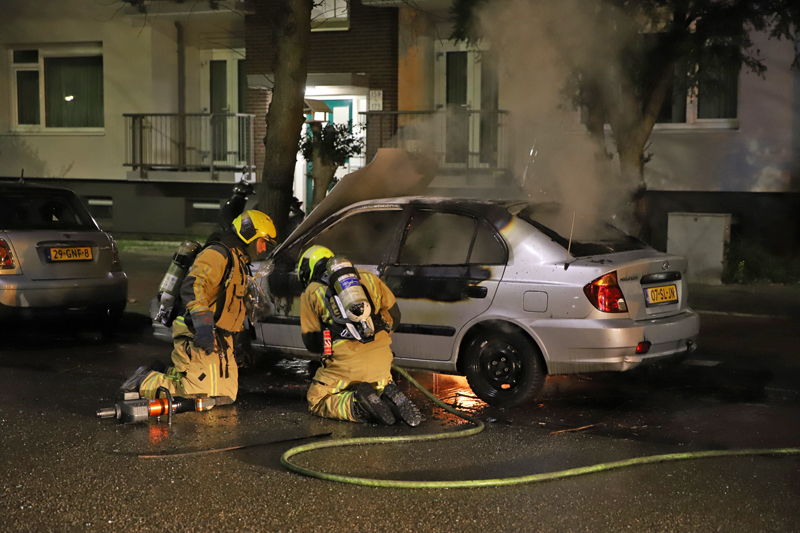 De brandweer kwam met spoed ter plaatse. De auto stond al volledig in brand.