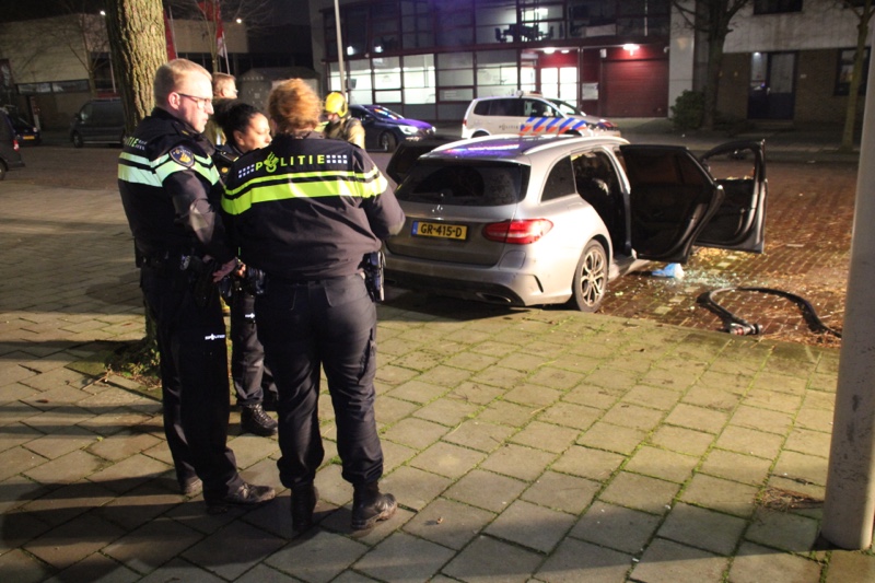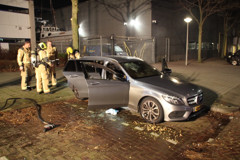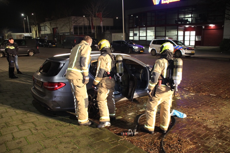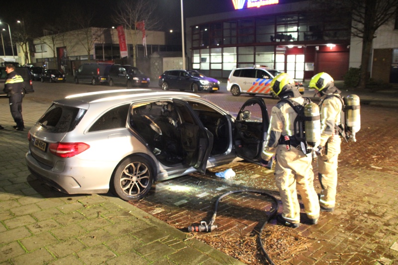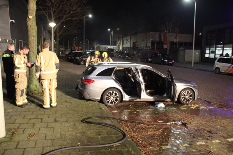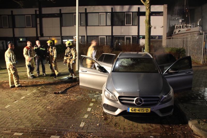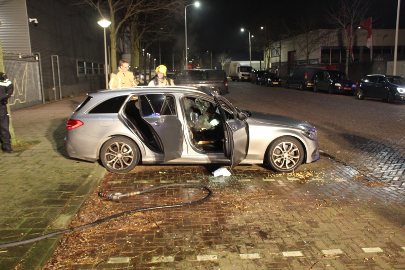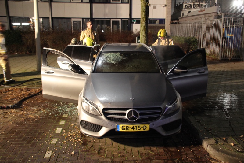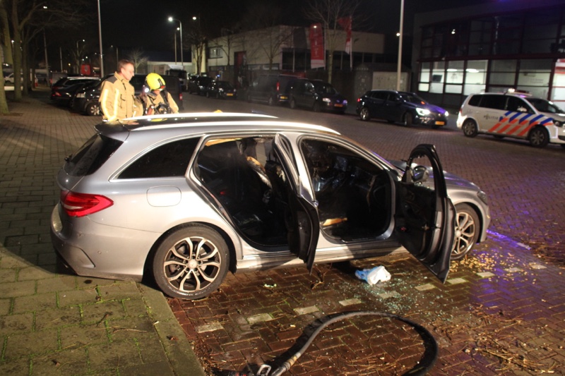 Naar verluid hebben twee personen het raam uit de rechter portier ingeslagen om vervolgens een brandbare vloeistof naar binnen te gooien.