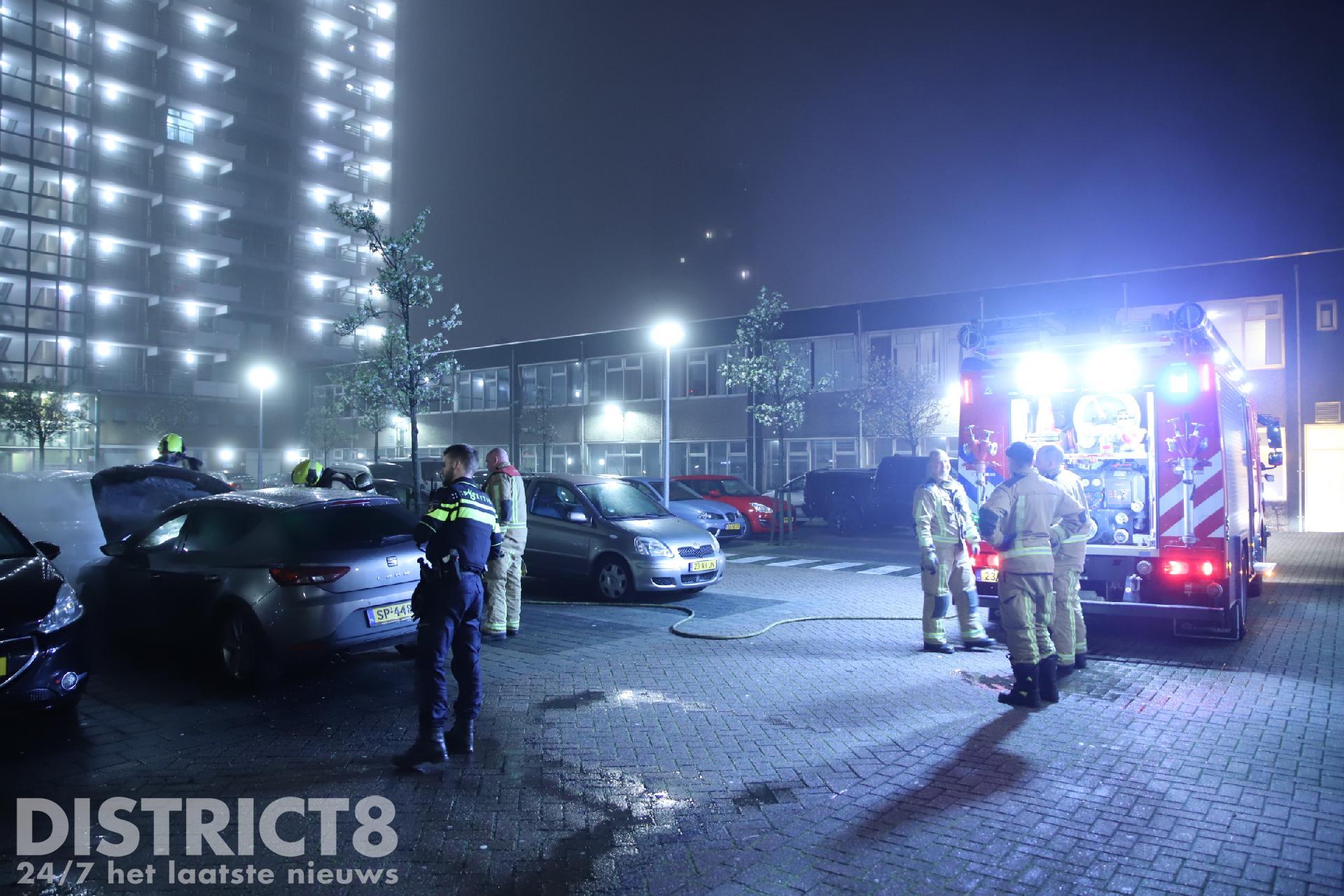 Bij aankomst van de brandweer bleek op een parkeerplaats het motorcompartiment van een geparkeerde auto in brand te staan. De brandweer is direct begonnen met het blussen van de autobrand. De brandweer had de brand snel onder controle. Wel raakte een voertuig wat naast de brandende auto stond beschadigd aan de achterzijde.