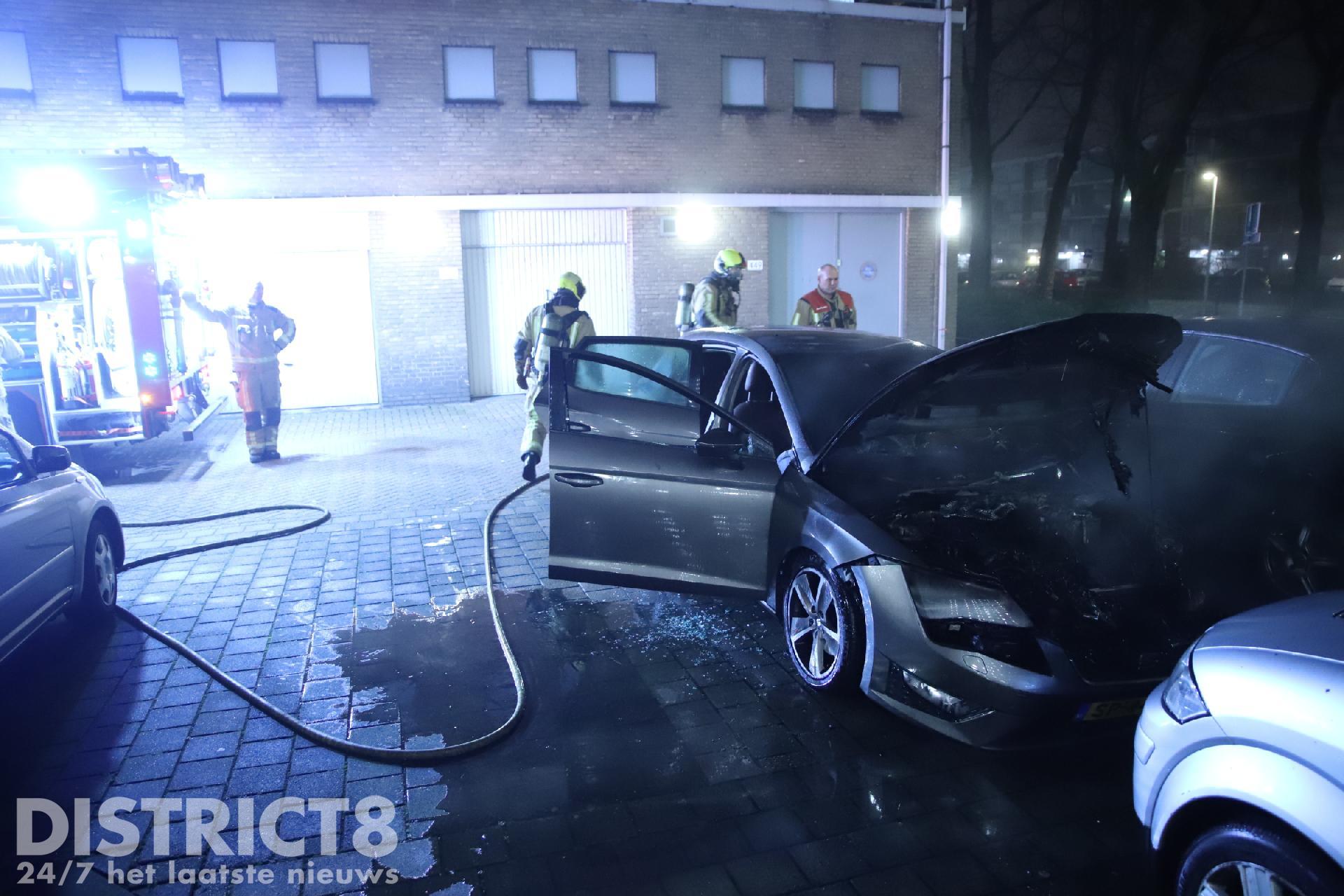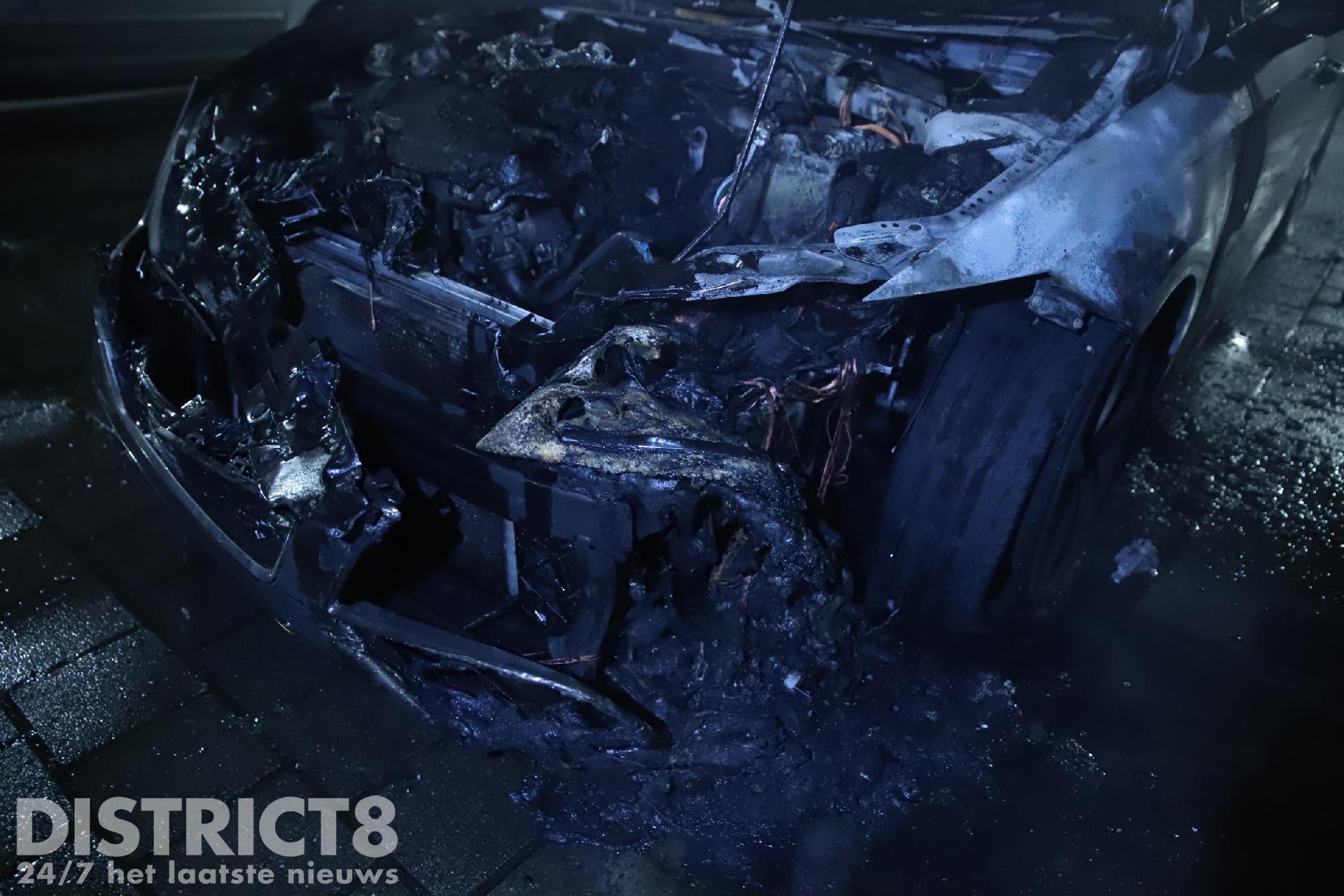 De auto die in brand stond is door de brand verwoest. De politie doet onderzoek naar de oorzaak van de brand, brandstichting wordt niet uitgesloten.