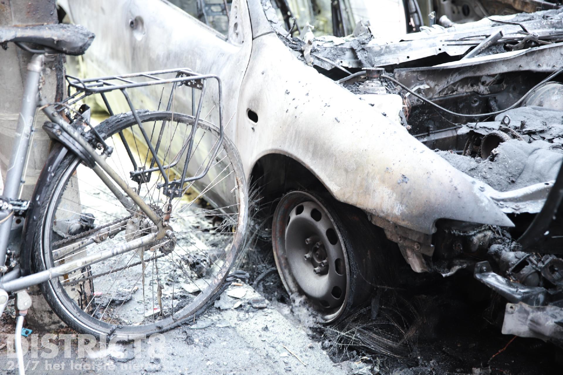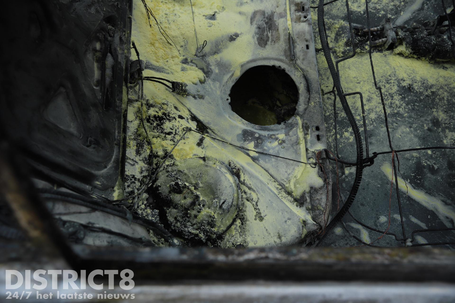 Een bergingsbedrijf zal het uitgebrande voertuig op komen halen.