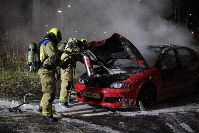 Bij aankomst van de brandweer stond het voertuig al volledig in lichterlaaie. Door middel van een spreider heeft de brandweer de motorkap van het voertuig geopend. Met een handblusser hebben zij het motorcompartiment afgeblust.