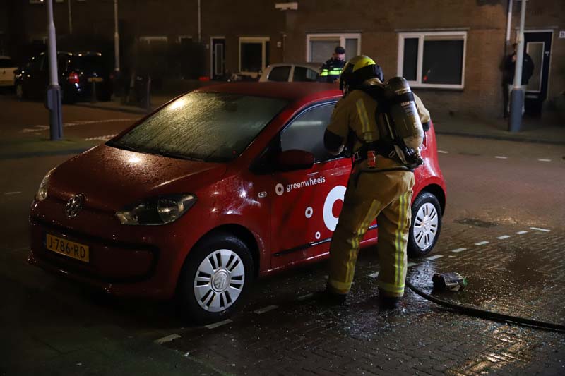 Den Haag – Op het Alberdingk Thijmplein in Den Haag is zondagavond 24 januari een geparkeerde auto van NS-Greenwheels in brand gestoken.