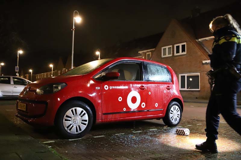 Naast het geparkeerde voertuig werd een vuurwerk pot aangetroffen.
