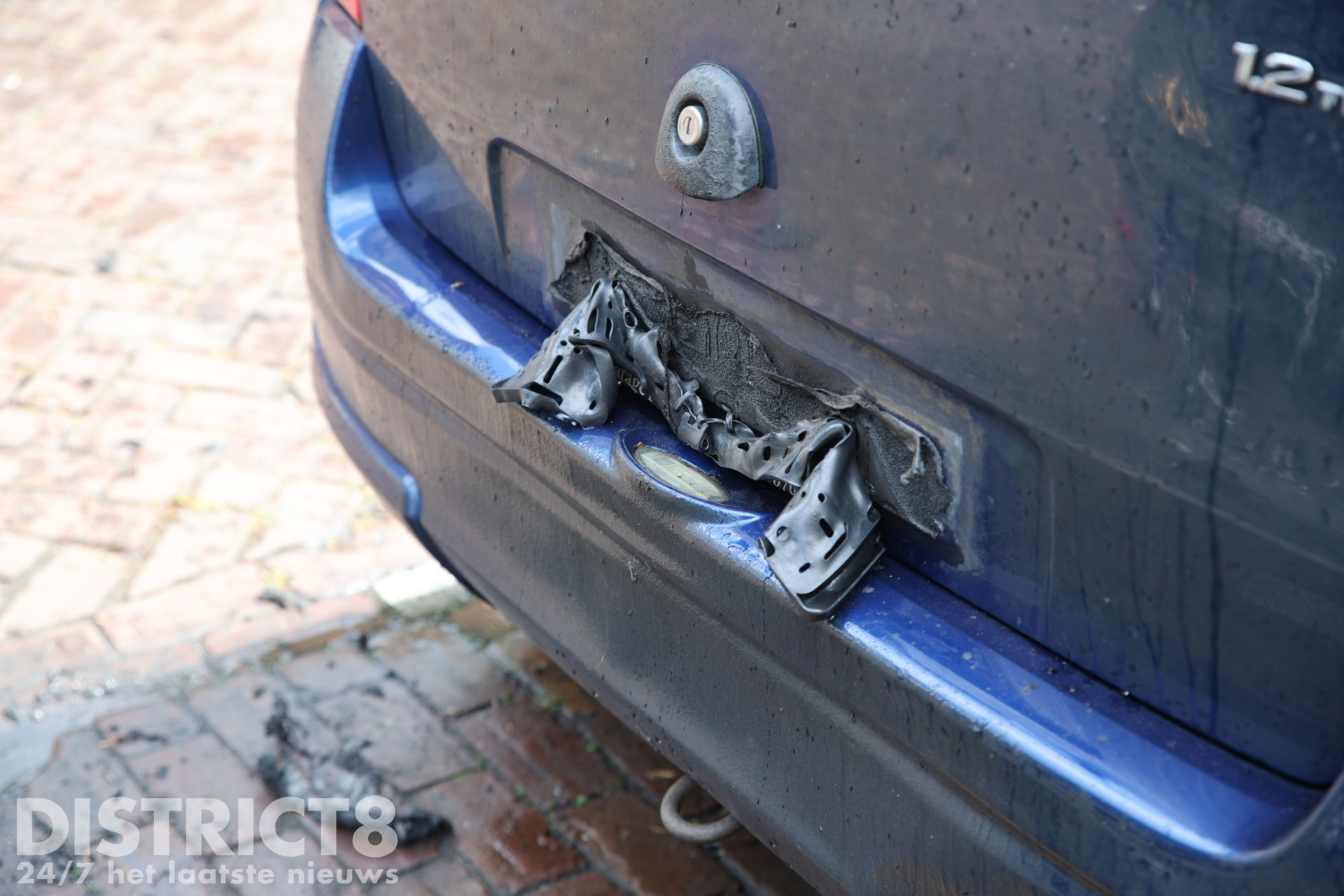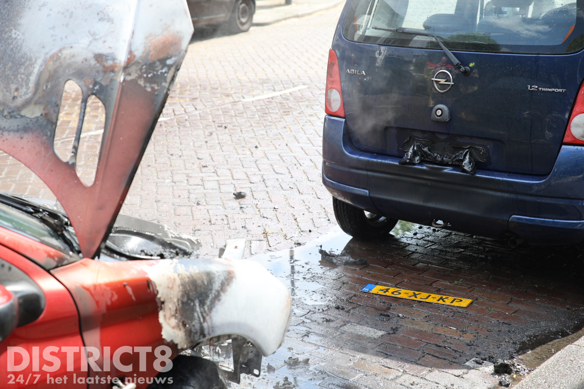 Ook een auto die voor de brandende wagen stond raakte beschadigd, hoe de brand is ontstaan is niet bekend. Een berger komt de wagen wegslepen.