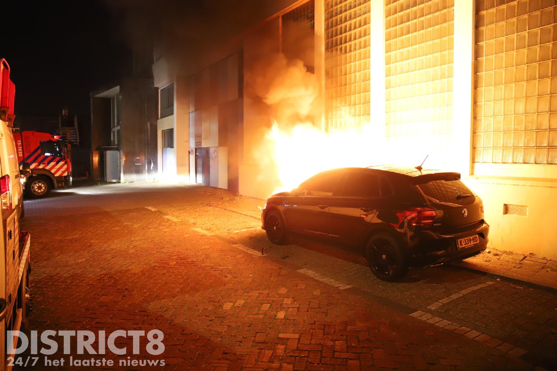 Het pand waarnaast de auto geparkeerd stond heeft door de brand lichte schade opgelopen.