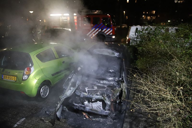 Den Haag – Op de Melis Stokezijde in Den Haag is een geparkeerde auto volledig uitgebrand.