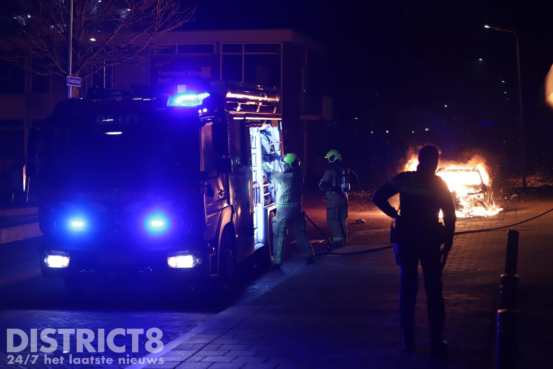 Delft – Op de Troelstralaan in Delft heeft in de nacht van dinsdag 23 op woensdag 24 januari een geparkeerde auto in brand gestaan. Omstreeks 02:30 kwam op de meldkamer een melding binnen dat een auto volledig in brand zou staan.