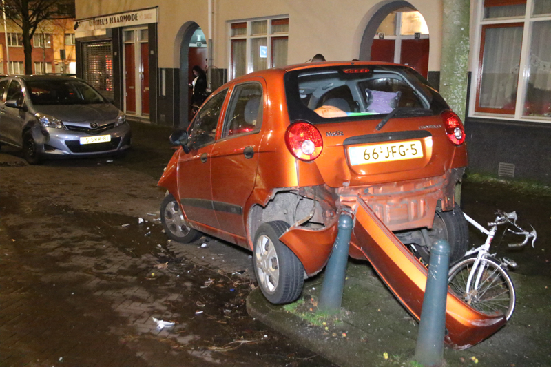 De automobilist kwam op de Frans Halsstraat in botsing met twee geparkeerde auto’s. Na de aanrijding ging de bestuurder er met flinke snelheid vandoor.