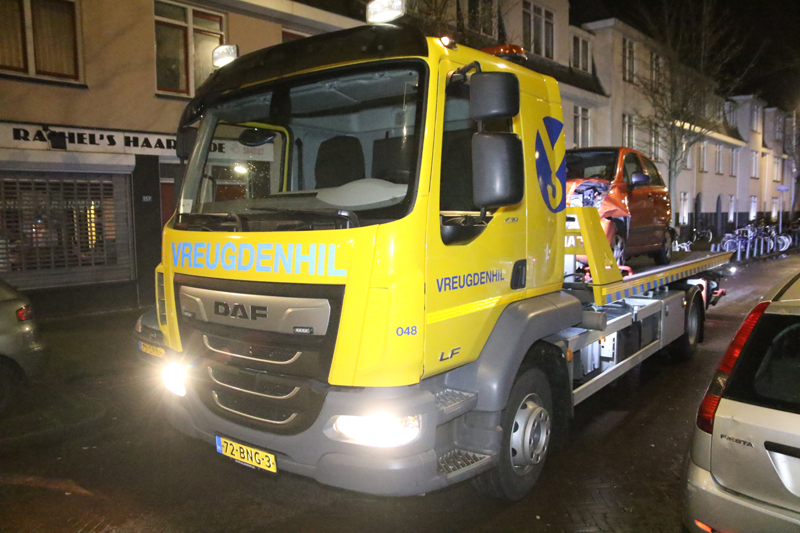 Een berger van Vreugdenhil kwam ter plaatse om de zwaar beschadigde auto af te slepen.