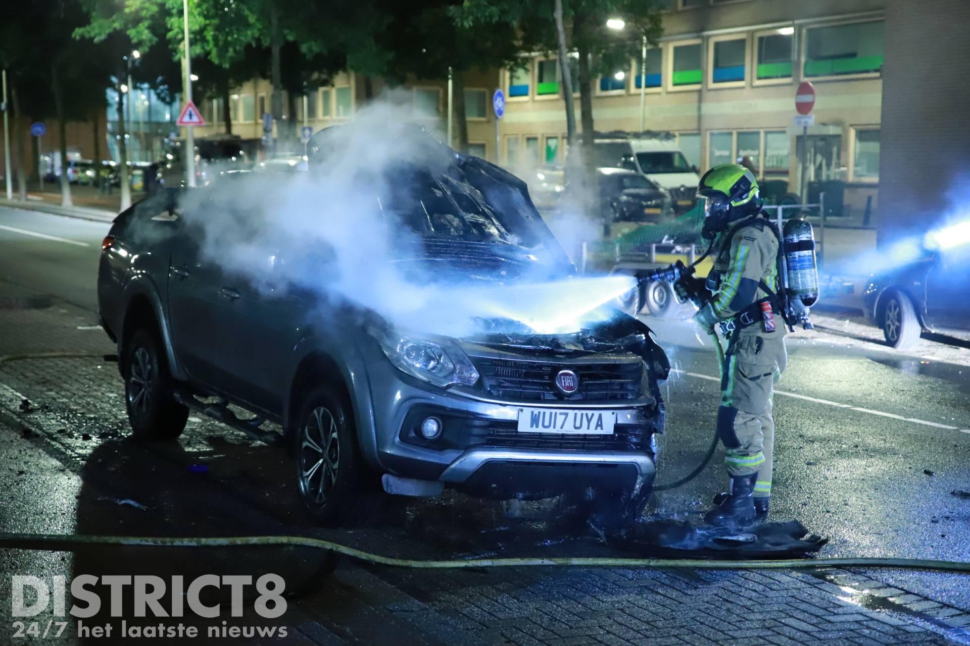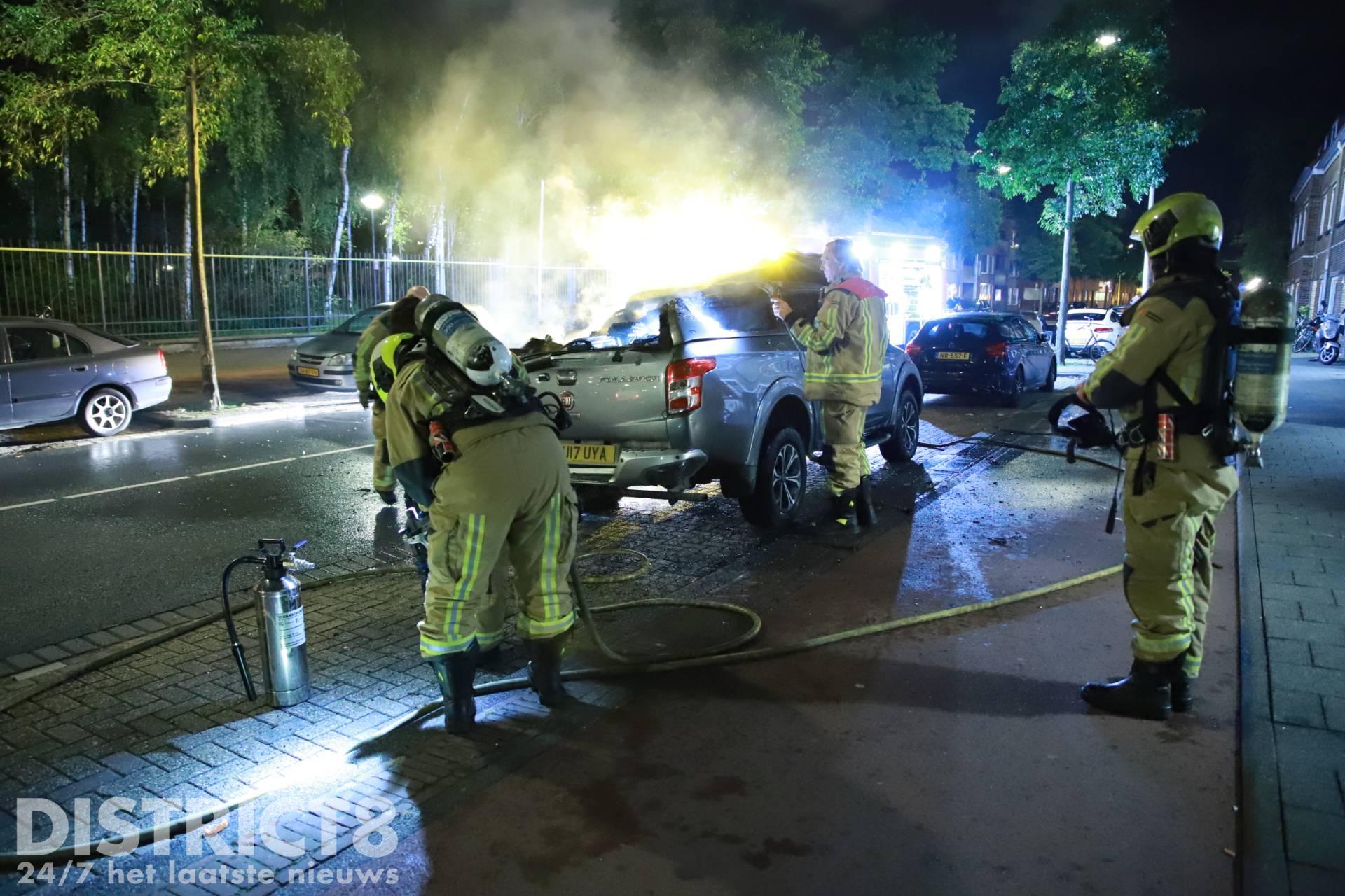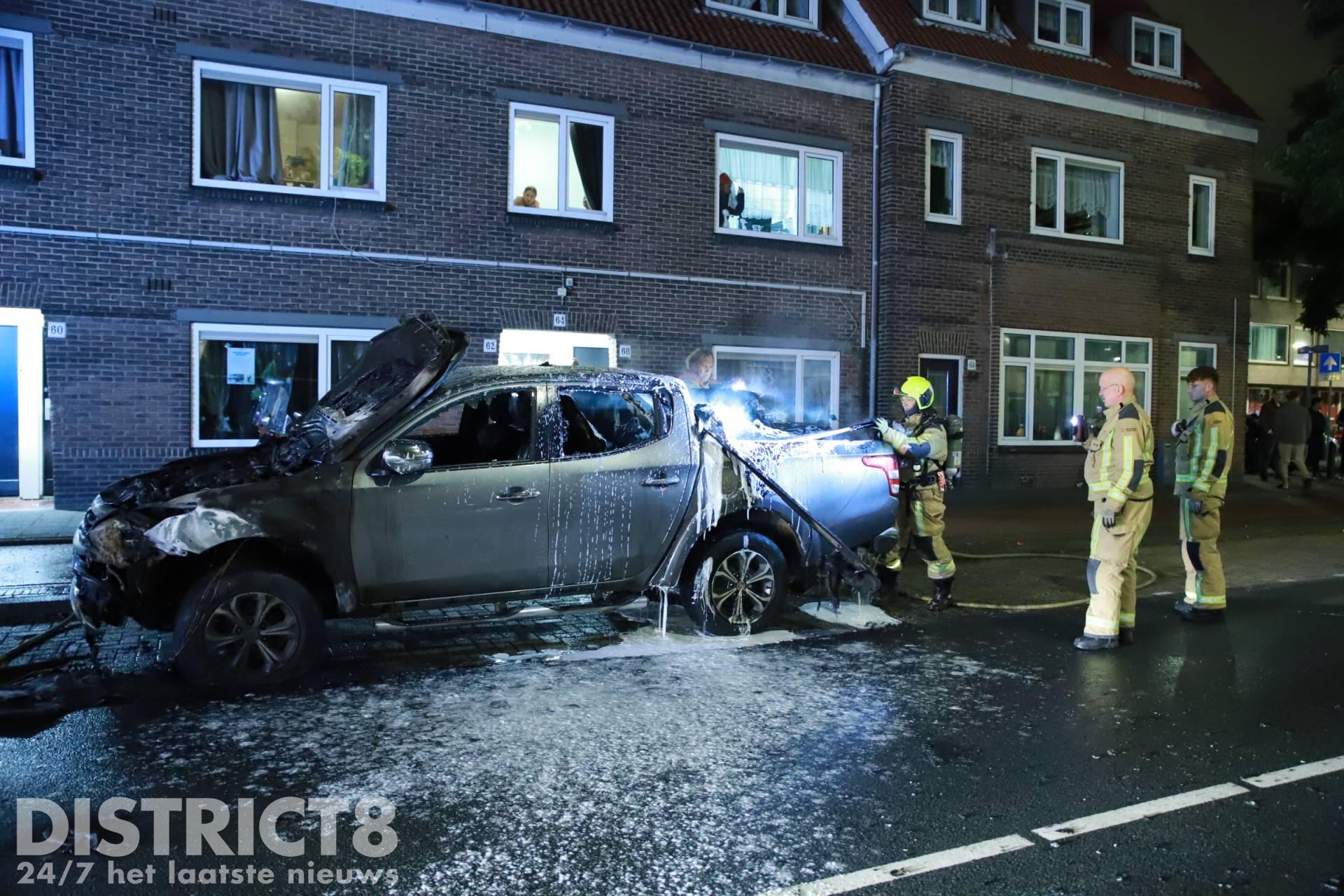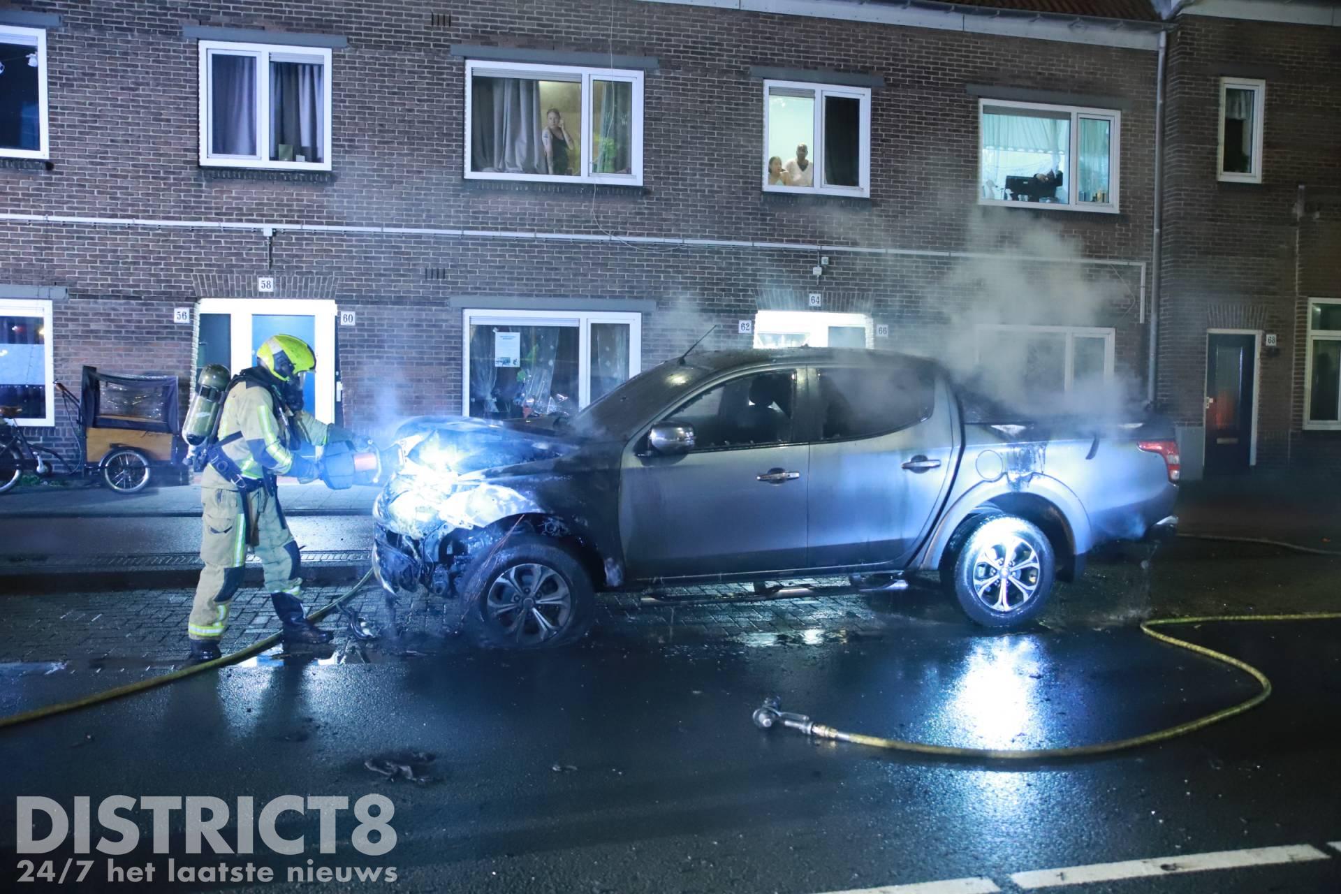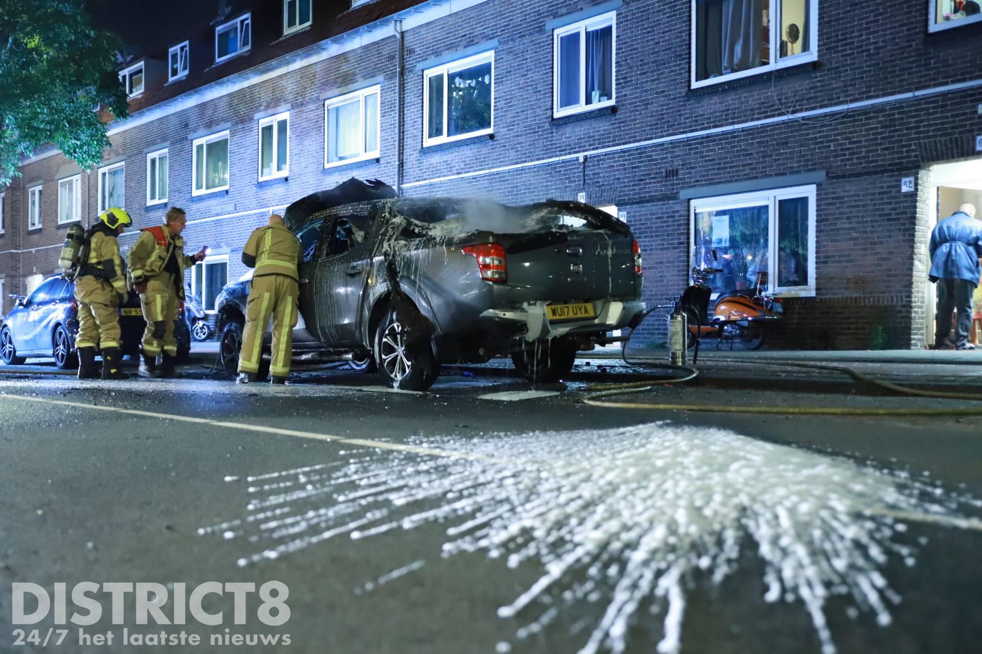 Geparkeerde pick-up zwaar beschadigd na vlammenzee Alberdingk Thijmstraat Den Haag